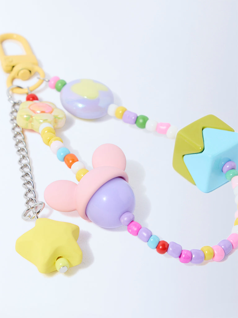 Studiowest infuses playful charm into your outdoor style with this multicoloured beaded bag charm. Anchored by a sunny yellow hook closure. the design comes alive with a curated mix of pastel and vibrant beads??think whimsical florals. geometric pops. and a miniature bear head for a hint of nostalgia. A dangling yellow star adds movement and mischief. making it the perfect detail to personalise totes. backpacks or pouches with a youthful edge.