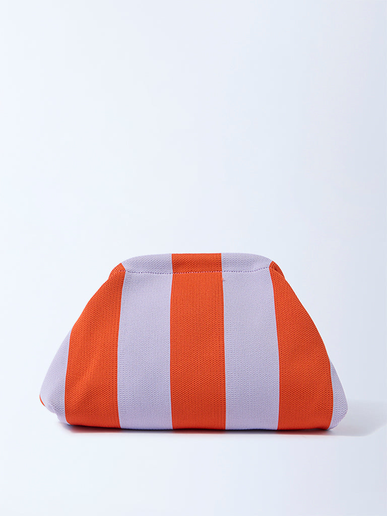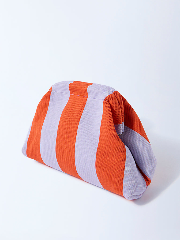 An instant mood-lift from Studiowest. this canvas pouch pairs playful stripes in orange and lilac for a punch of color confidence. Its soft. fold-base construction opens wide to hold makeup. stationery. or travel must-haves. The tactile fabric and vivid hues exude a carefree spirit. making it the ideal companion for both gym bags and weekend escapes. A small piece that brings big personality to everyday essentials.