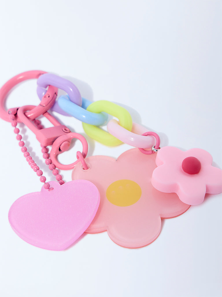 Studiowest Pink Floral and Heart Design Bag Charm