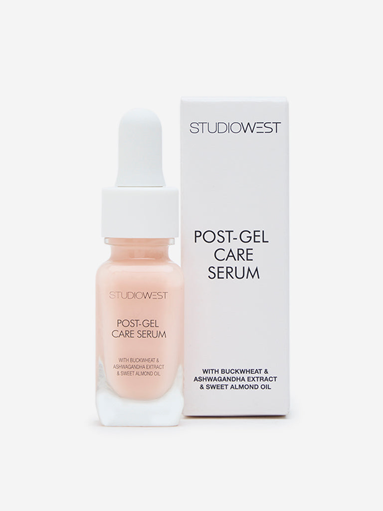 Soothe and revive your nails with this post gel care serum from Studiowest. infused with buckwheat. ashwagandha extract. and sweet almond oil. This enriching serum helps repair nails and cuticles after gel applications. ensuring deep hydration and nourishment. Its quick-absorbing formula strengthens nails and promotes healthy regrowth while leaving a subtle sheen. A must-have for post-manicure recovery. it keeps your nails looking fresh and revitalized.