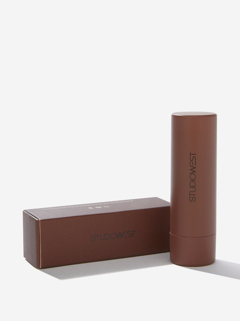 Enhance your lips with a rich cocoa-tinted lip balm by Studiowest. blending color and nourishment seamlessly for a luscious look.