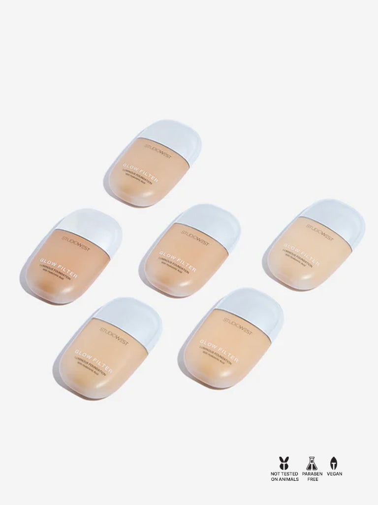 Soft. luminous and effortlessly radiant. Studiowest’s Glow Filter Foundation in the shade Vanilla is designed for fair to light skin tones. Offering a breathable layer of coverage that feels weightless on the skin. this blend able formula seamlessly diffuses imperfections and smooths out uneven texture. Infused with Hyaluronic Acid. it provides lasting hydration while reinforcing the skin barrier. From daytime glow to evening polish. this foundation delivers a flawless demi-matte finish with a naturally lit effect.