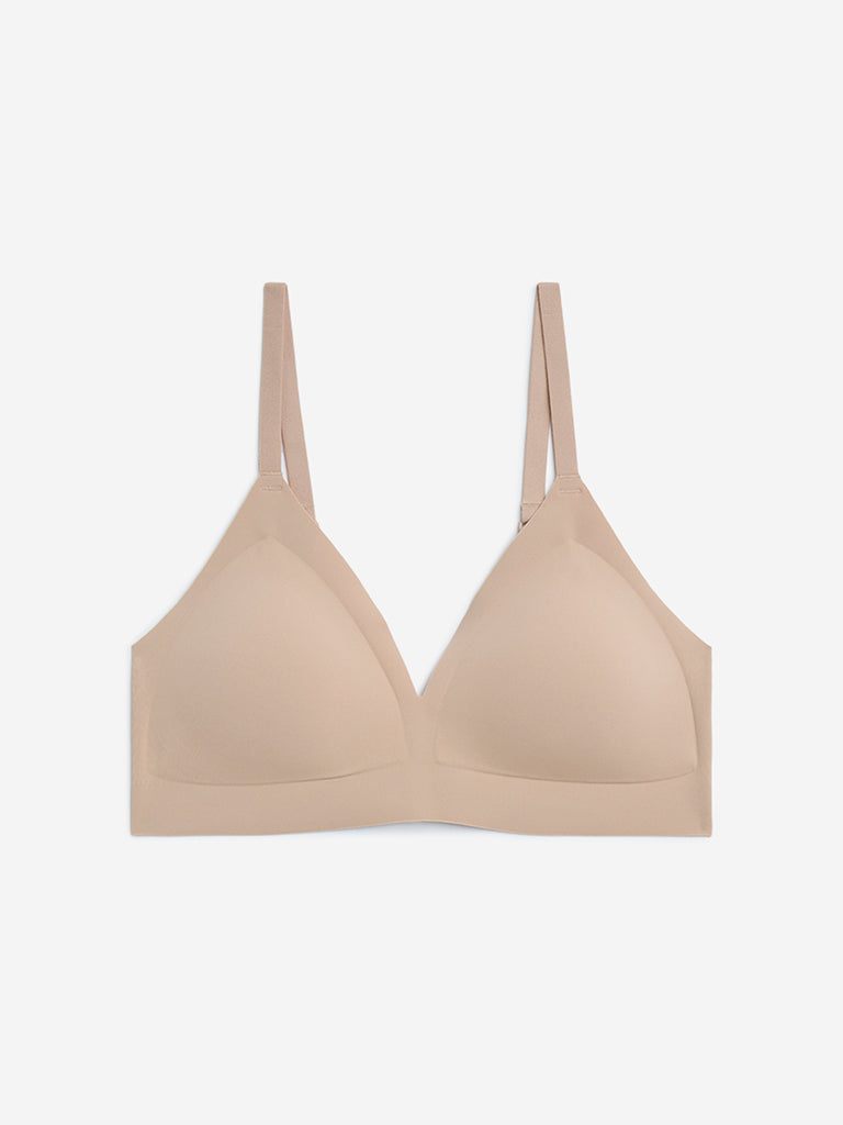 Superstar presents this beige triangle bra. crafted from a lightweight fabric for optimal comfort. Its comes with gentle padded cups for added support. while providing a lightweight. invisible look under clothing. A perfect essential for everyday wear.