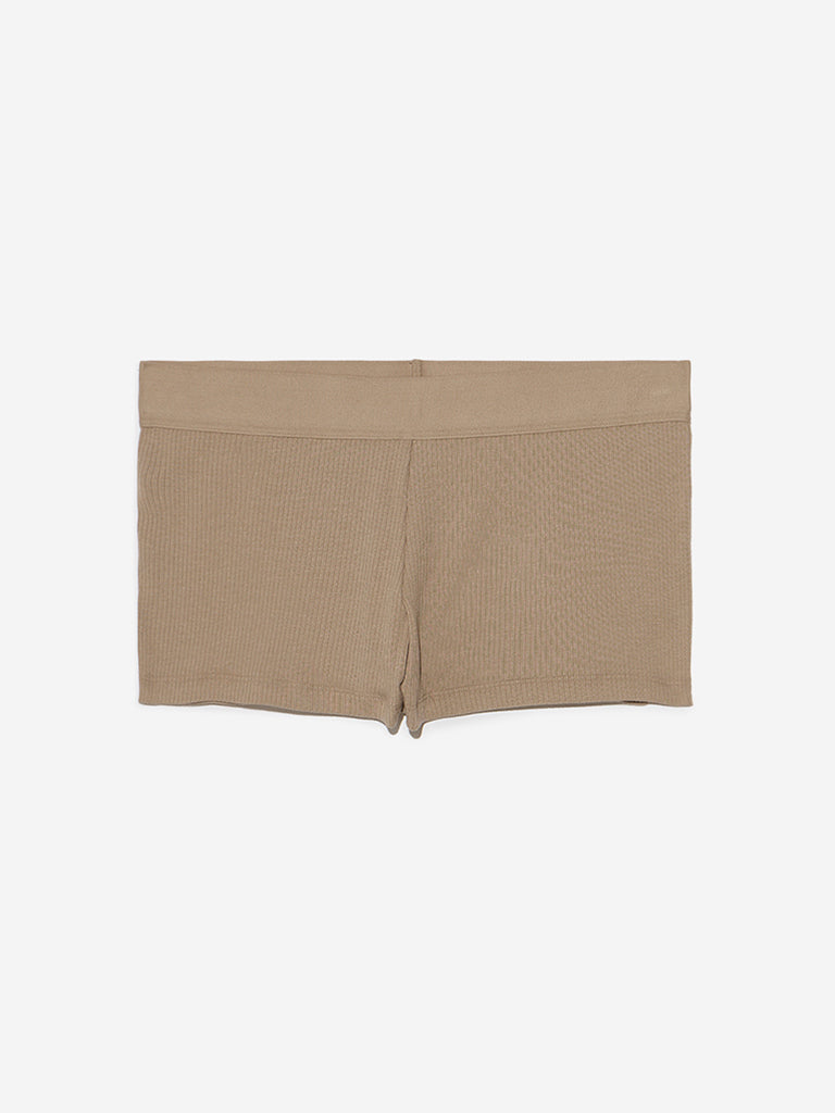 Superstar Beige Ribbed-Textured Boy Shorts Briefs