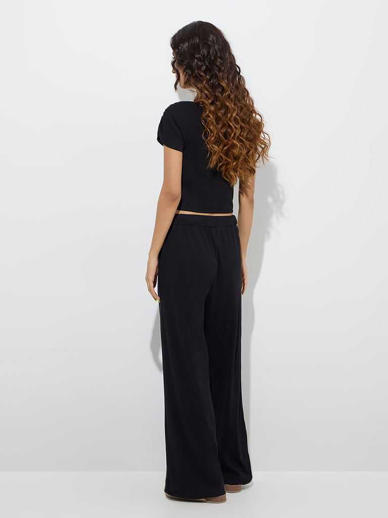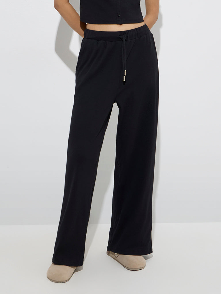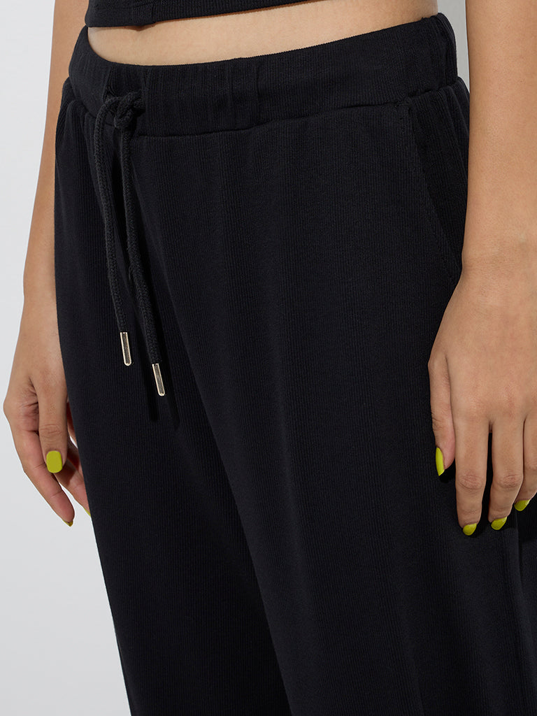 Superstar Black Ribbed High-Rise Cotton-Blend Pants