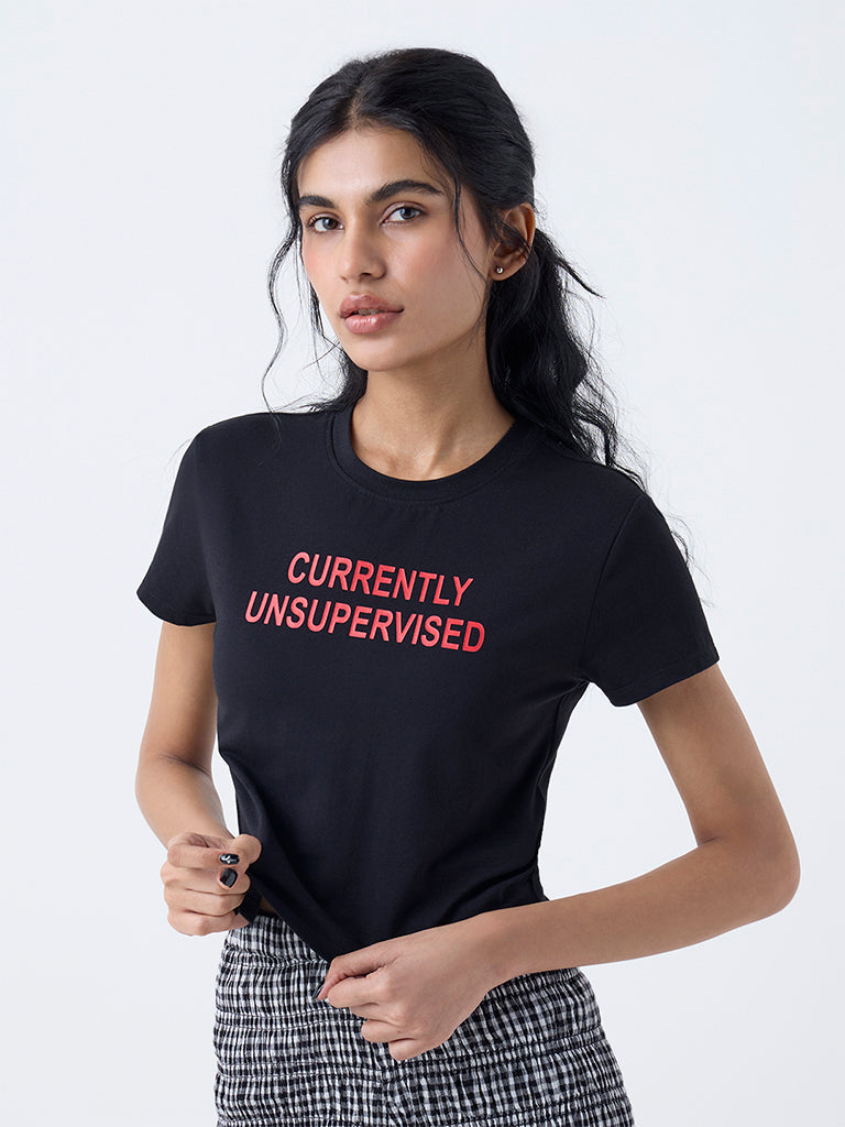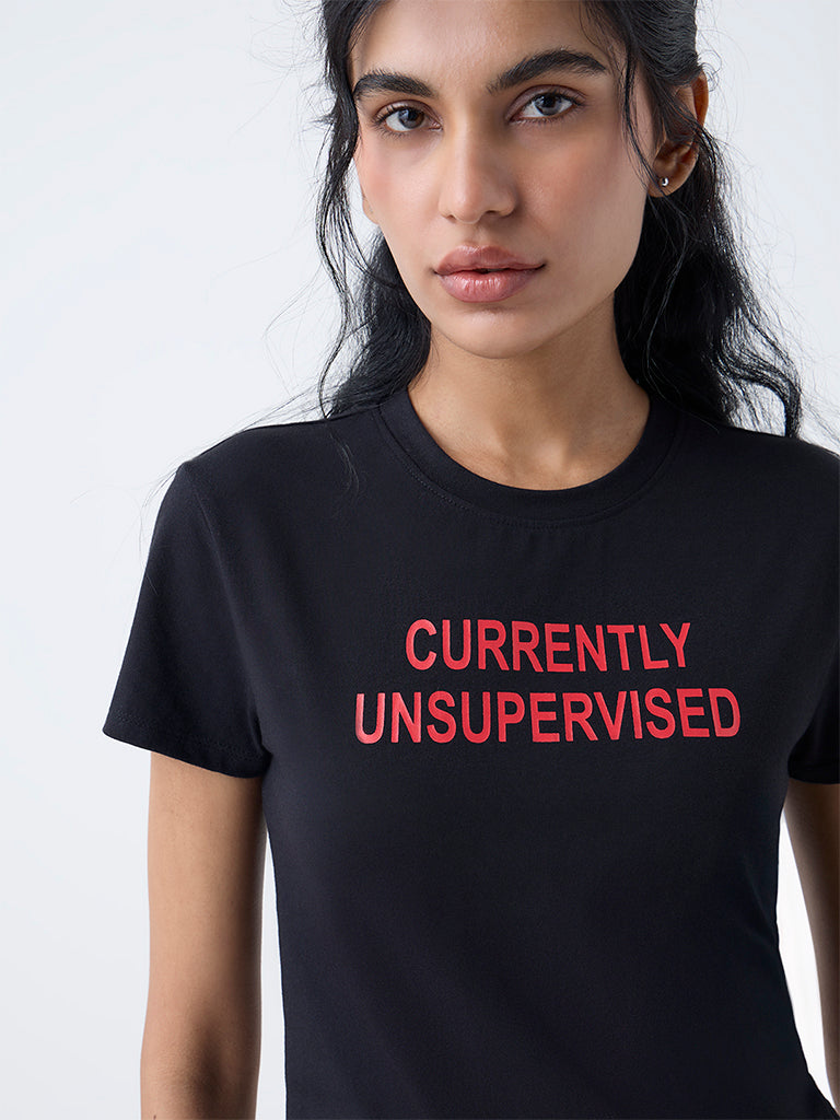 Superstar Black Typographic Cotton-Blend T-Shirt