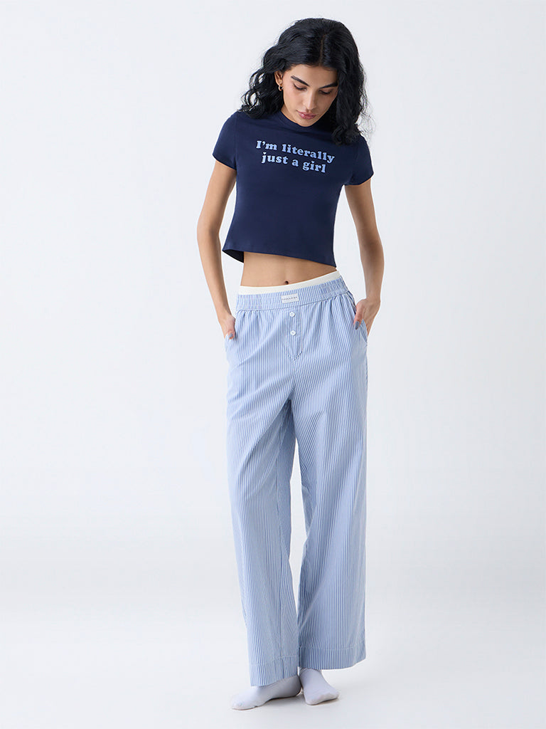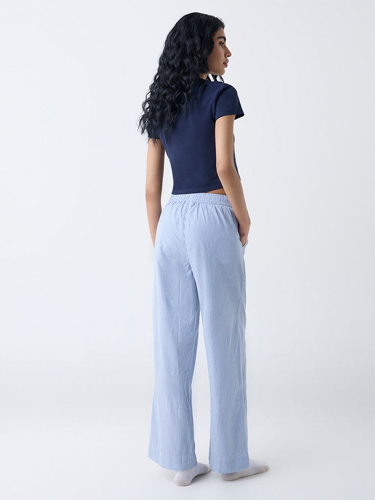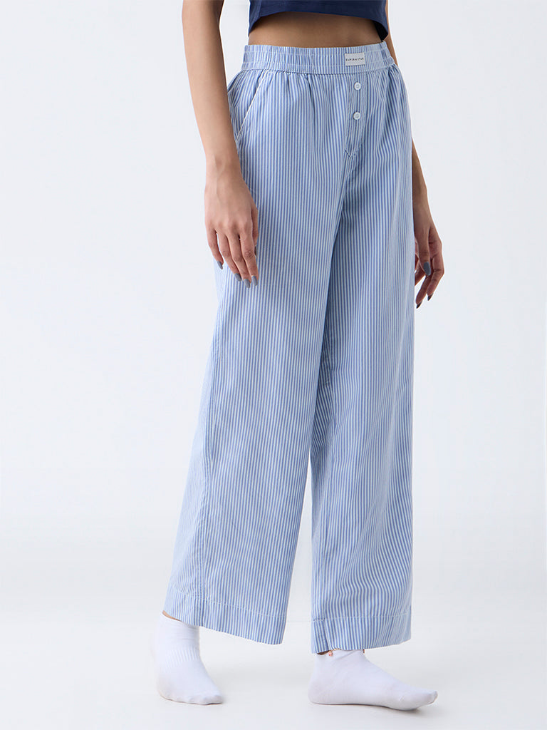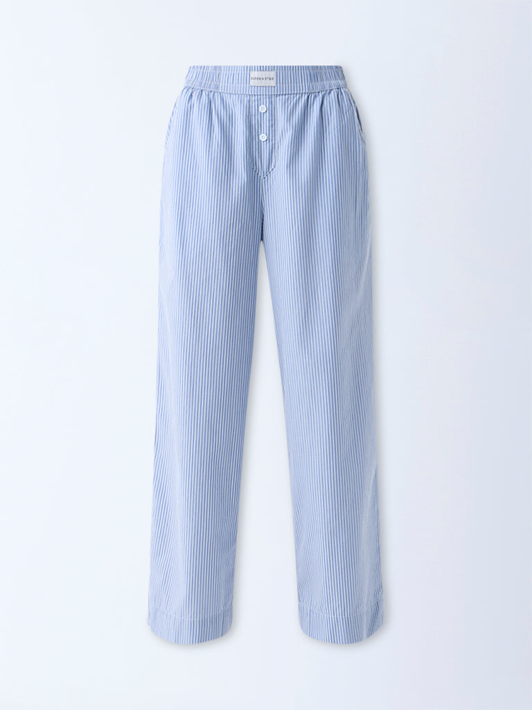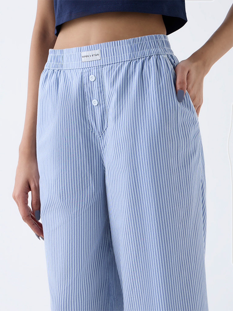 Designed for everyday refinement. these blue pants from Superstar showcase fine stripe patterns for a timeless look. They sit on a high-rise waist with an elasticated band for a comfortable fit. Milled from soft. lightweight fabric. they offer breathable comfort with functional pockets for added practicality.
