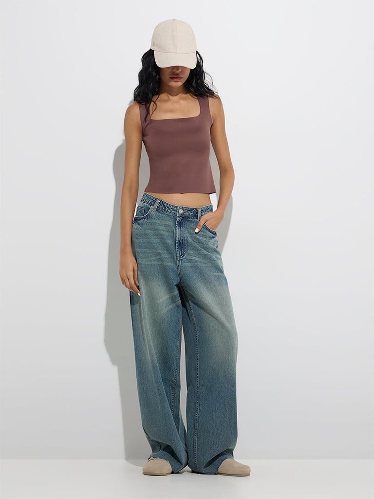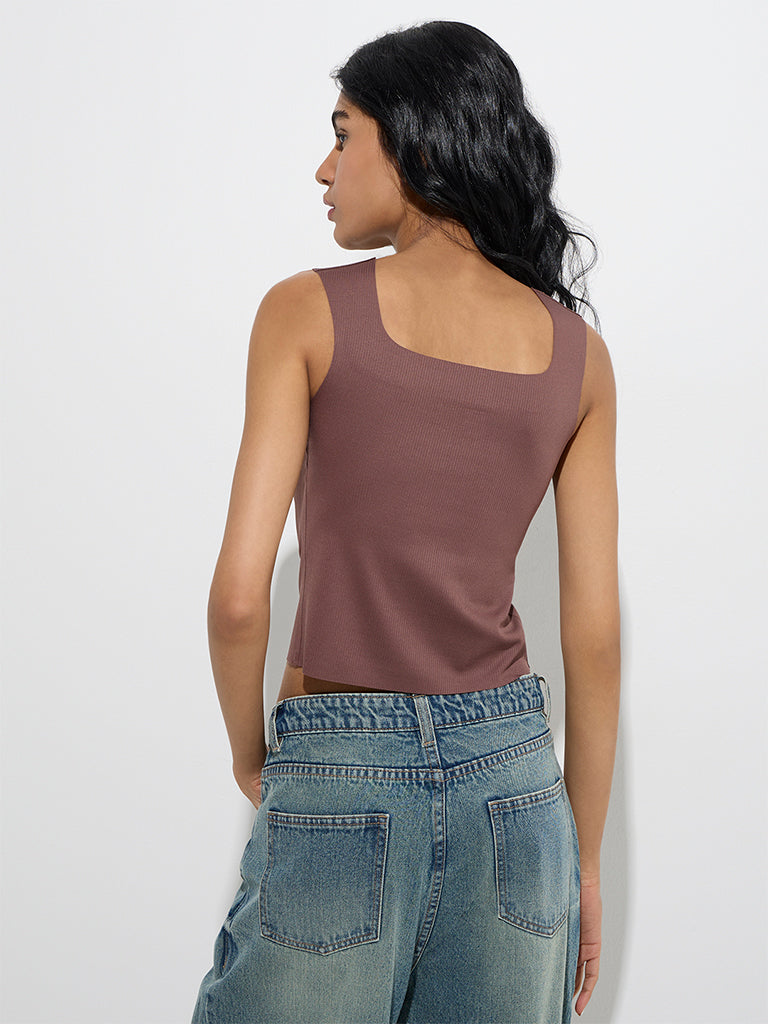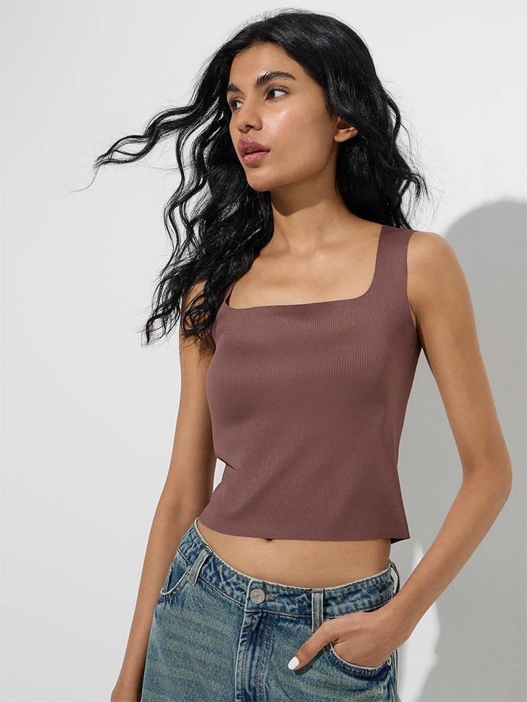Superstar Brown Ribbed-Textured Padded Tank Top