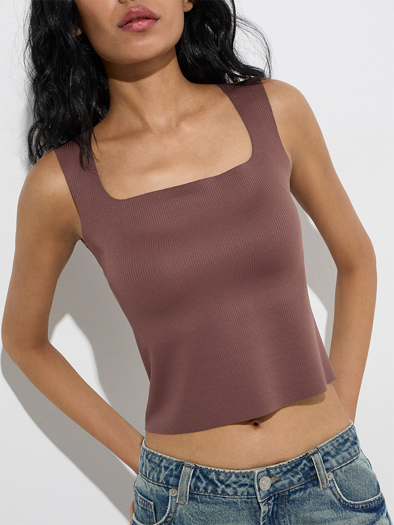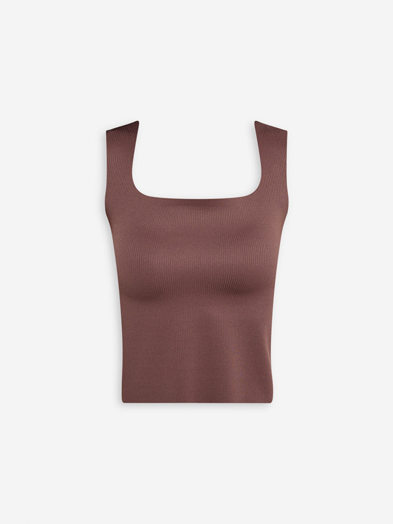 This brown tank top from Superstar blends comfort with a contemporary edge. Woven from a lightweight fabric with a ribbed texture. it hugs the body in all the right places. The square neck and sleeveless design offer a sleek silhouette. while the built-in padding provides light support??perfect for layering or wearing solo on busy days.