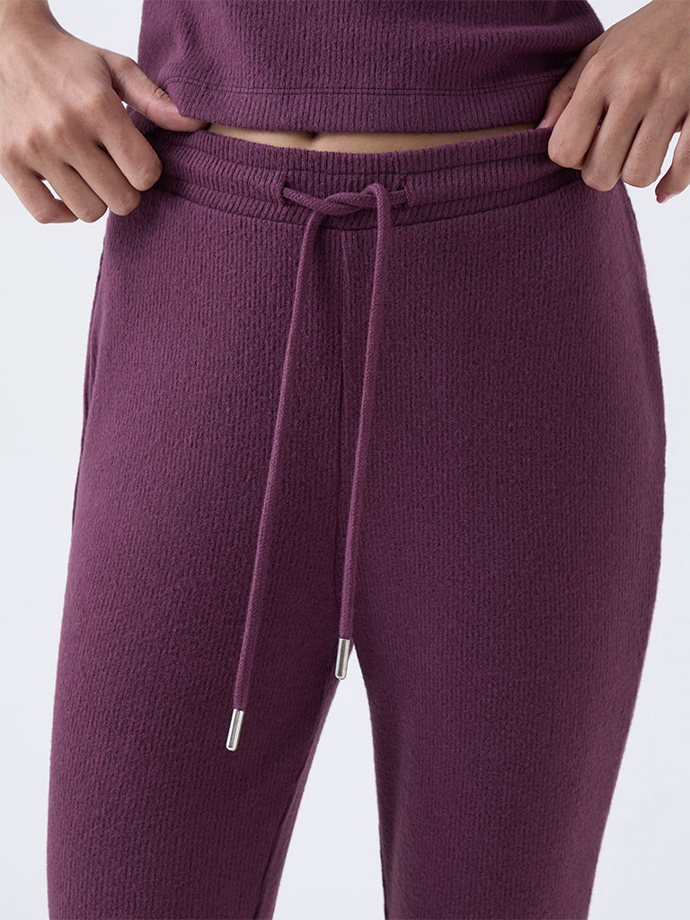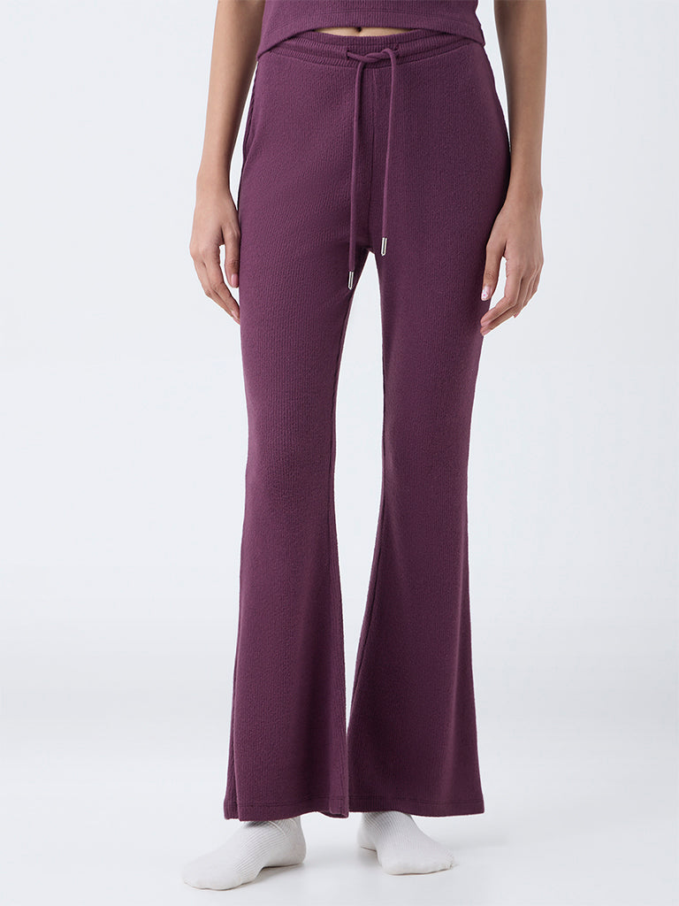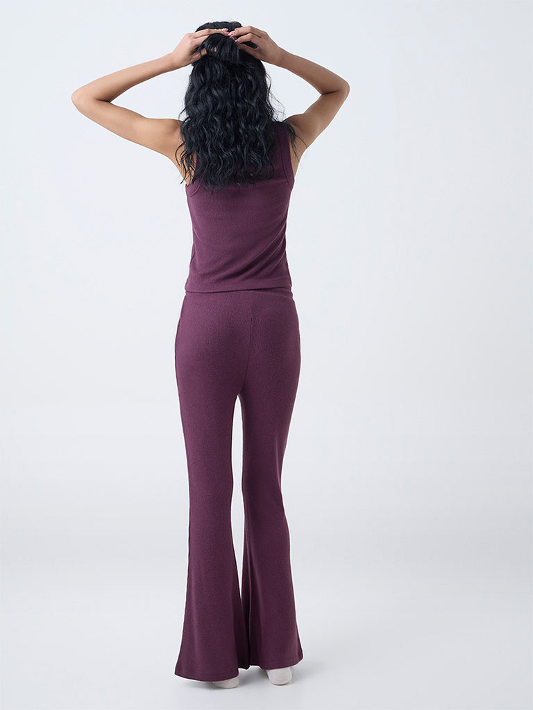 Superstar Burgundy Ribbed High-Rise Bootcut Pants