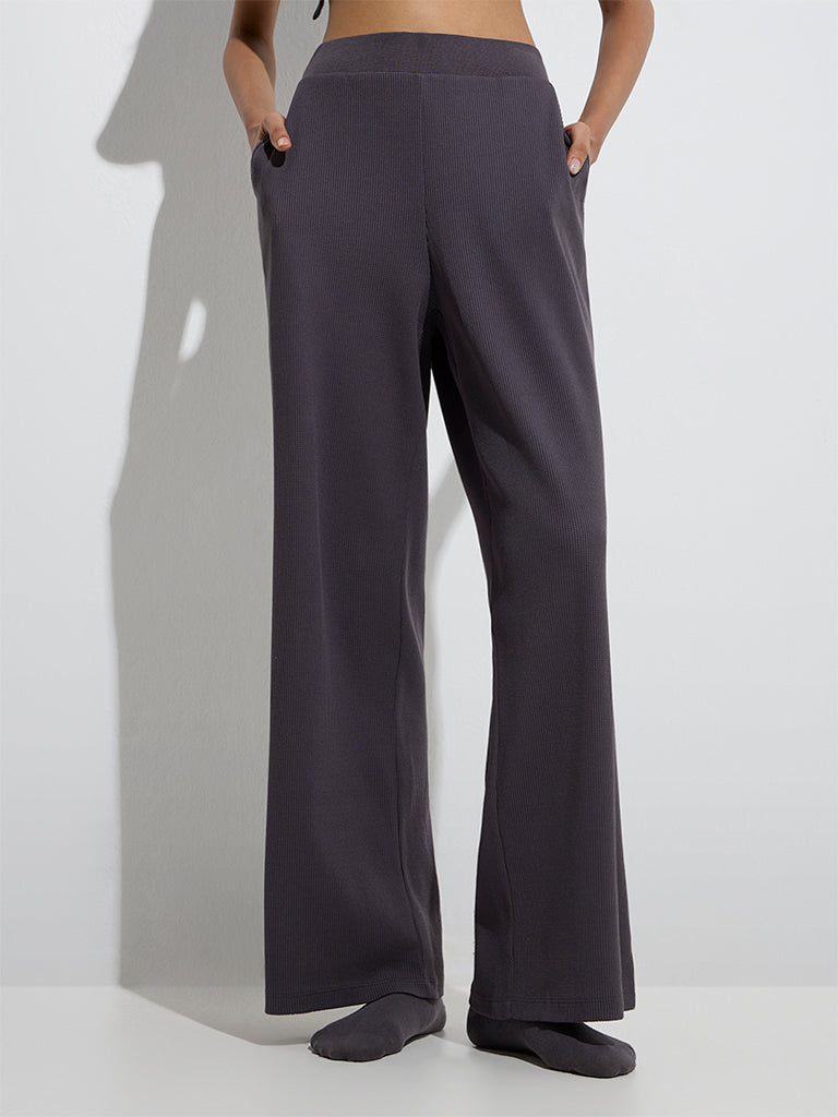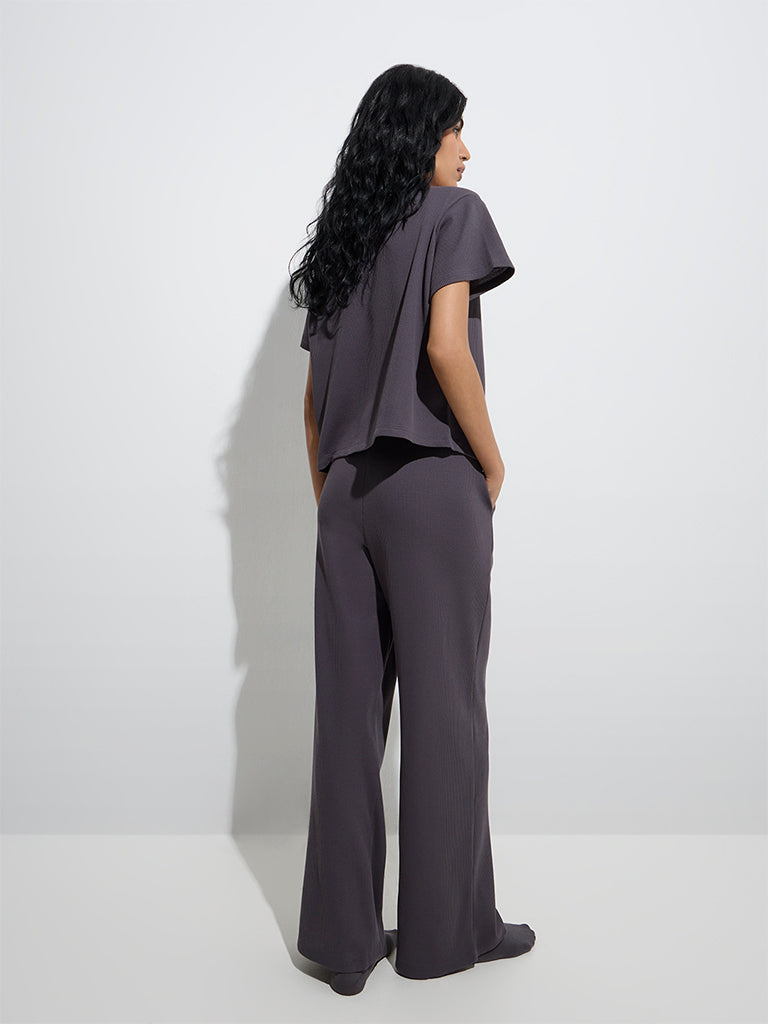 Superstar Charcoal Waffle-Textured Wide-Leg Pants