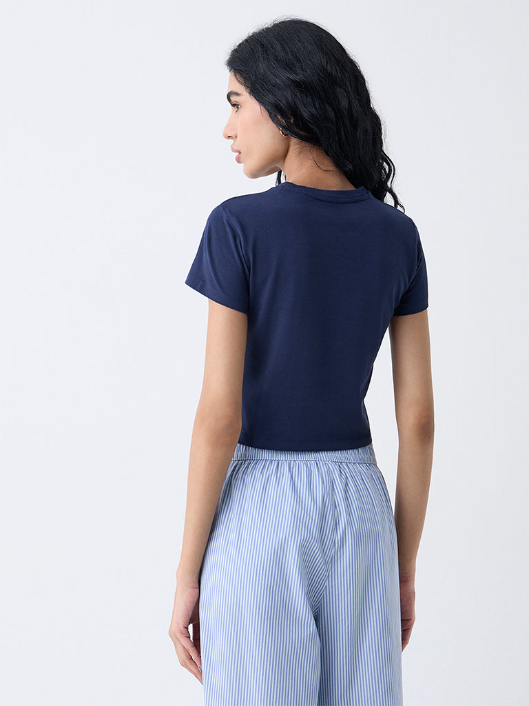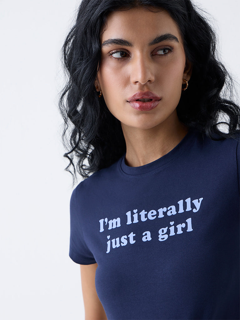 Superstar Dark Blue Text Design Cotton-Blend T-Shirt