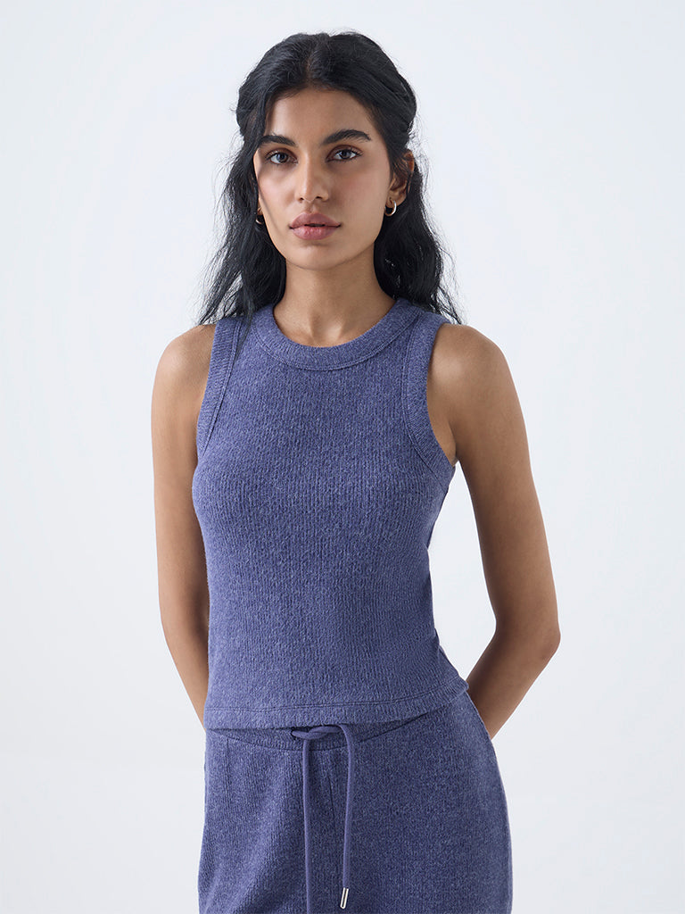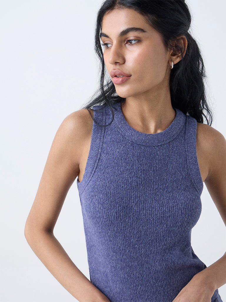 Superstar Dusty Blue Ribbed-Textured Tank Top