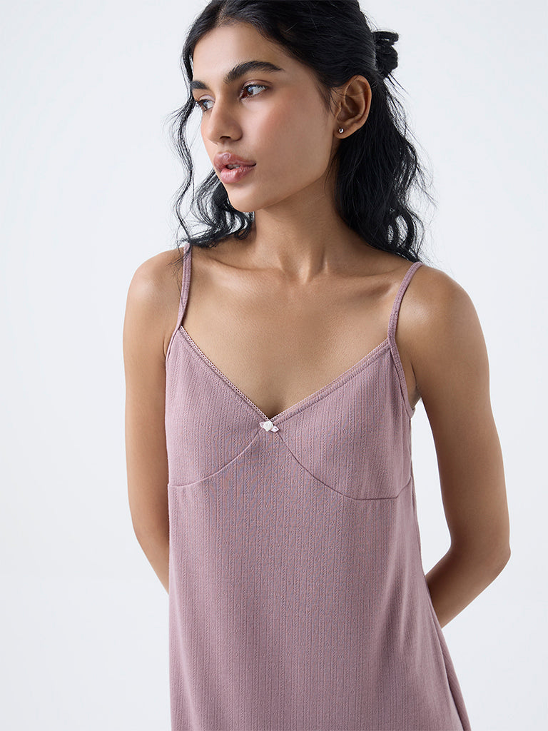 This dusty pink slip top from Superstar is crafted from soft. lightweight fabric that feels smooth and breathable. It is designed with V-neck and adjustable straps for ease. Accented with a rosette on the V-neck and a scalloped hem. it’s an ideal pick for relaxed evenings and comfortable at-home wear.