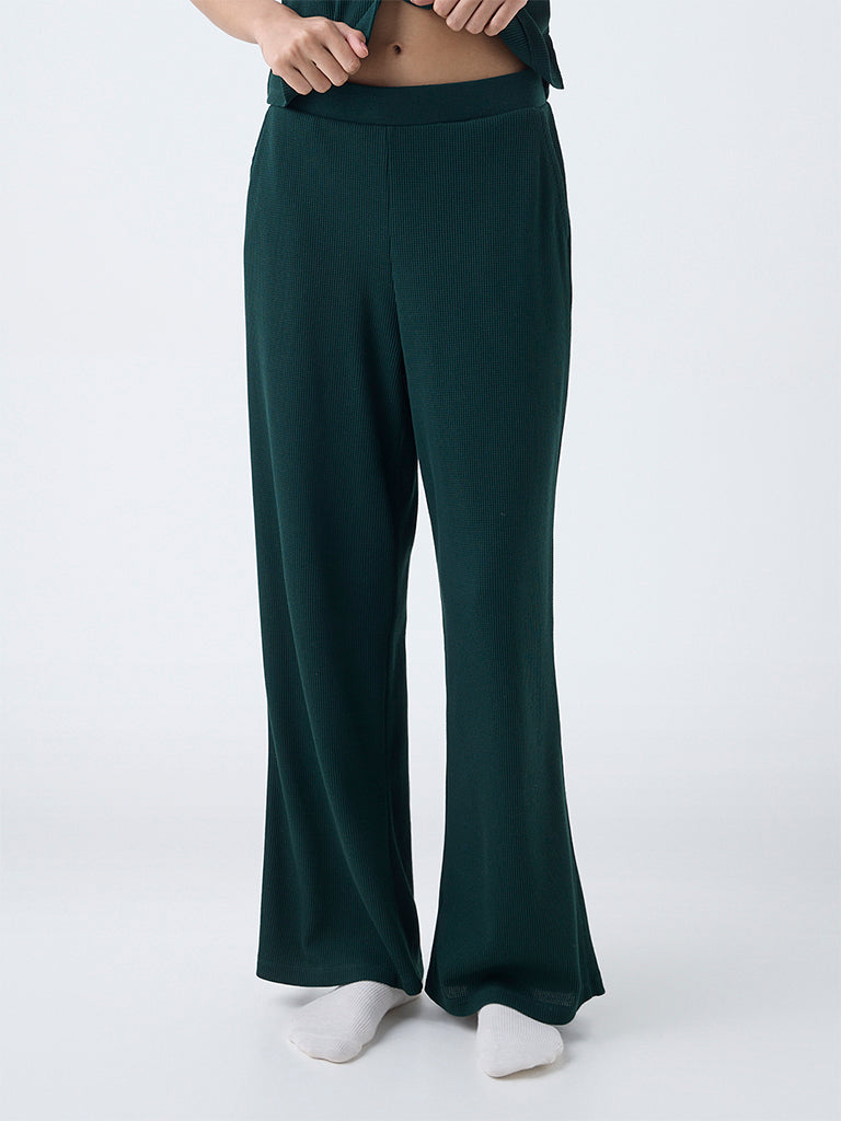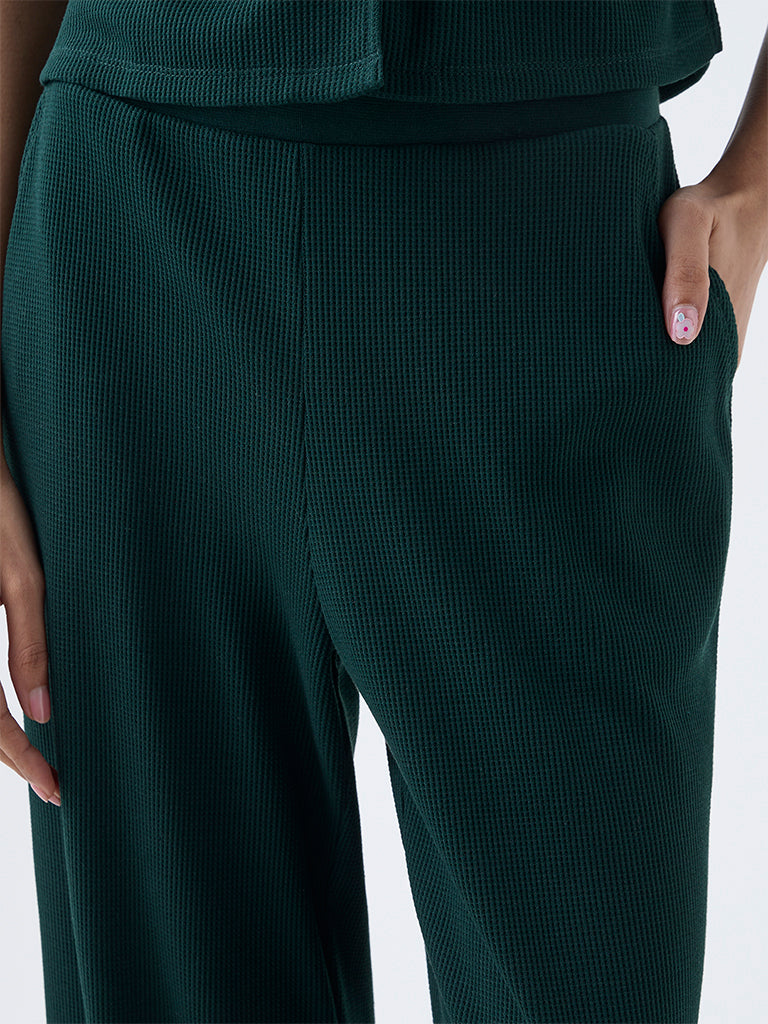 Bring texture and comfort to your downtime rotation with these emerald green pants from Superstar. The waffle-textured fabric adds subtle depth. while an elastic waistband with adjustable drawstrings and side pockets ensures a fit that’s as functional as it is relaxed.