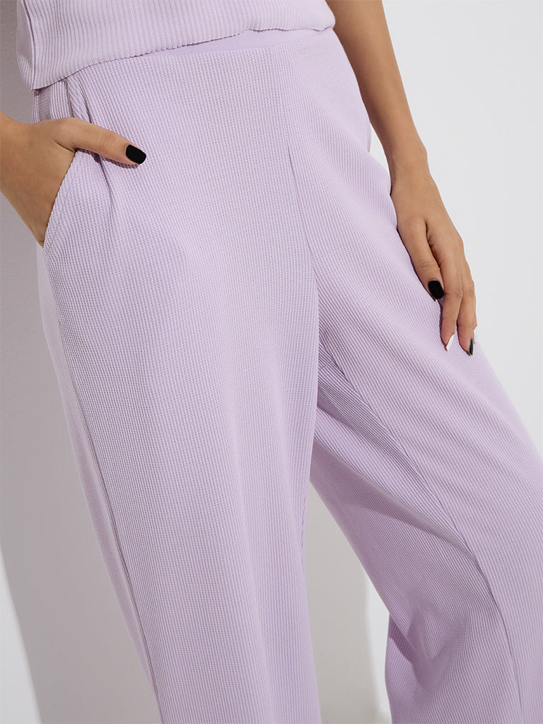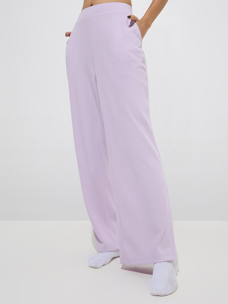 Superstar Lavender Ribbed-Textured High-Rise Lounge Pants