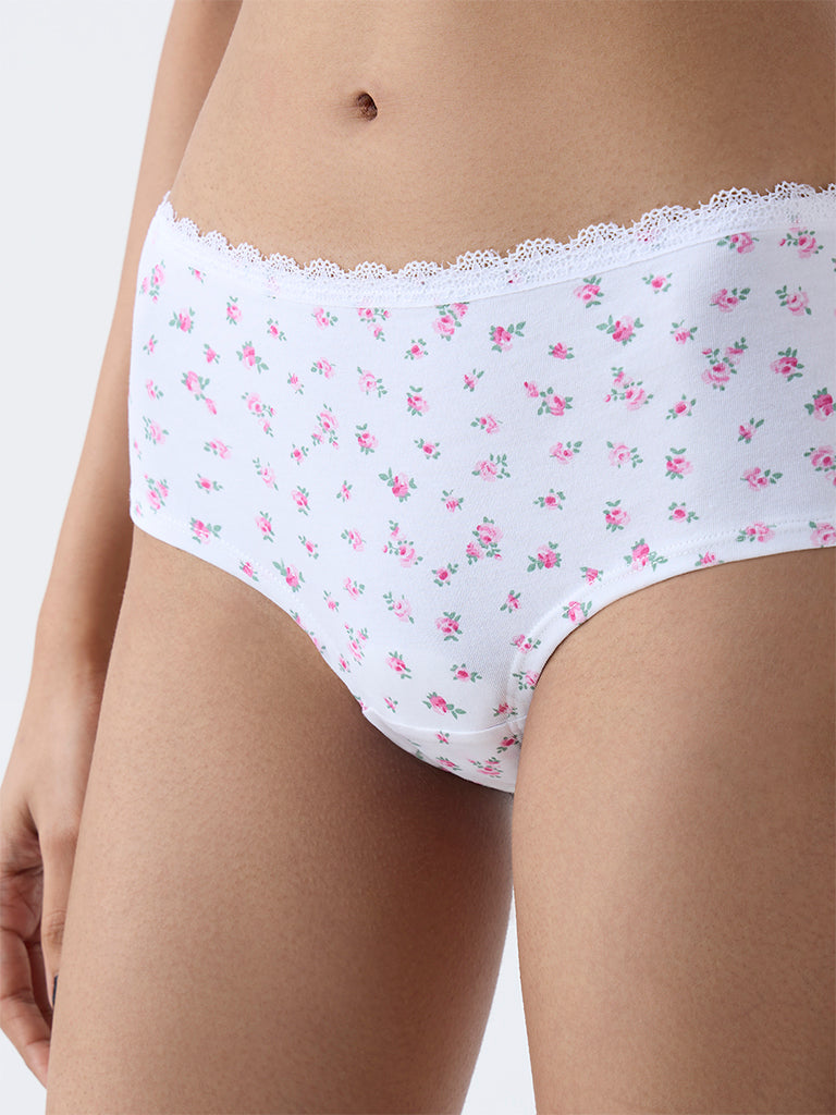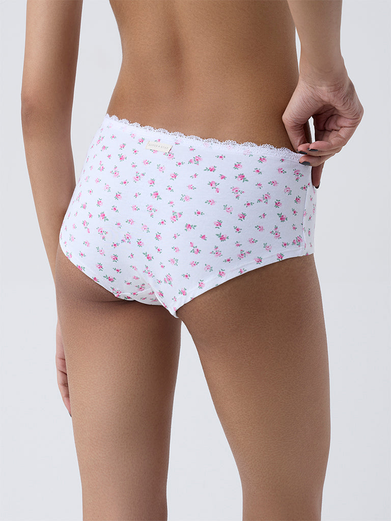 This set of multicolour briefs from Superstar comes in a white floral printed design and a solid wine hued variant. It features a lace trimmed detail on the elastic waist and a flattering cut that allows ease of movement. Crafted from cotton-blend fabric for a smooth feel. this is a comfortable choice for everyday wear.