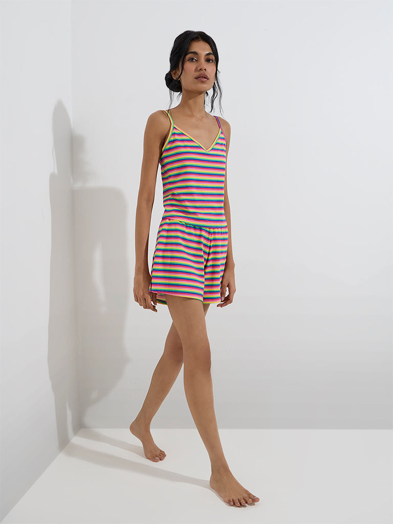 Superstar Multicolour Stripe High-Rise Cotton-Blend Shorts