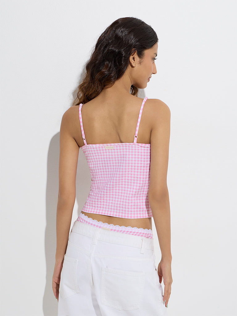 Superstar Pink Checkered Cotton-Blend Camisoles- Pack of 2