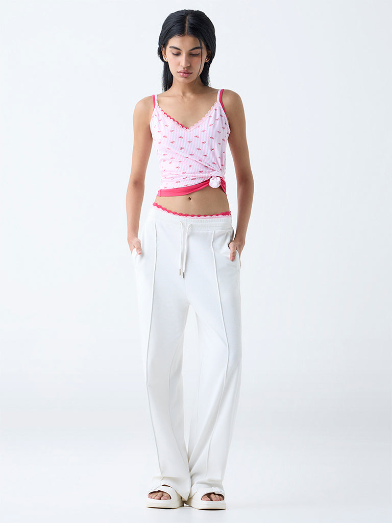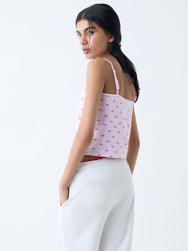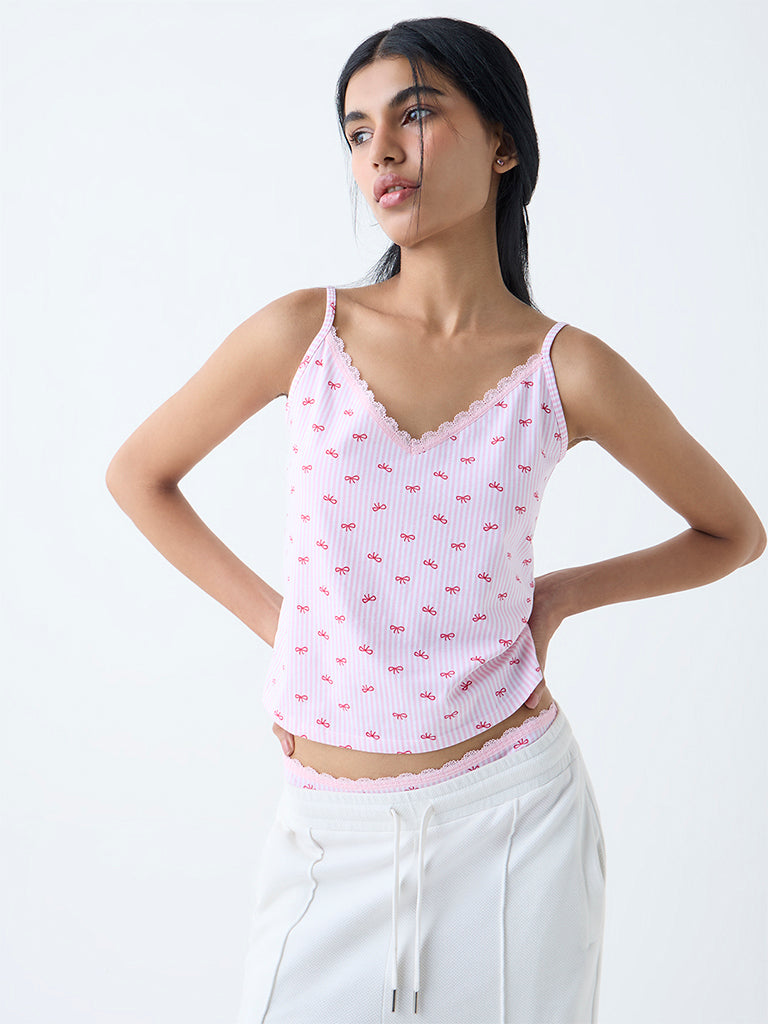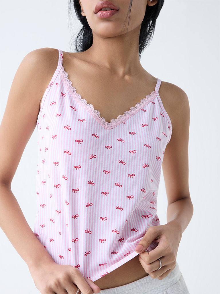 Turn lounging into a statement with this camisole set from Superstar. The duo includes a solid red variant and a pink striped design accented with bow motifs. both finished with lace-edged V-necks and adjustable straps. Spun from a cosy cotton-blend fabric. they deliver comfort you’ll want to live in.