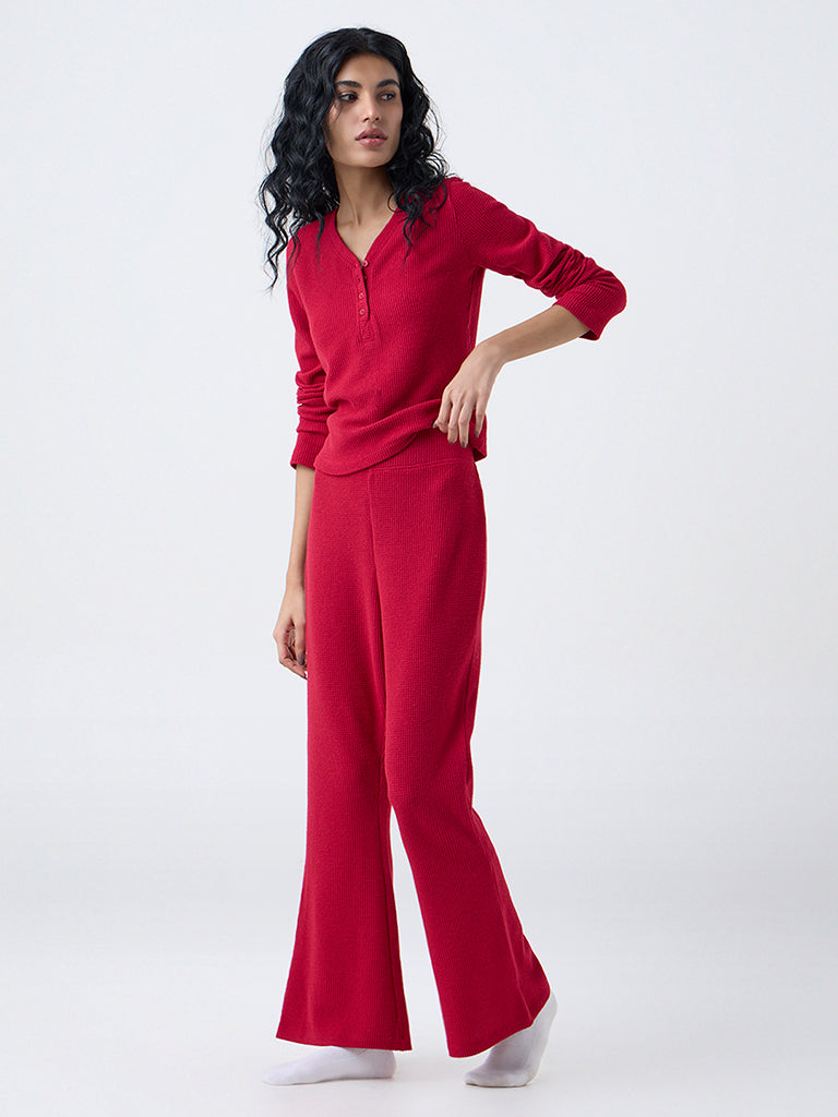 Be the first to review “Superstar Red Waffle-Textured Flared Pants”
