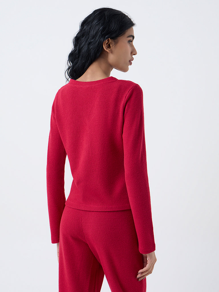 Superstar Red Waffle-Textured Top