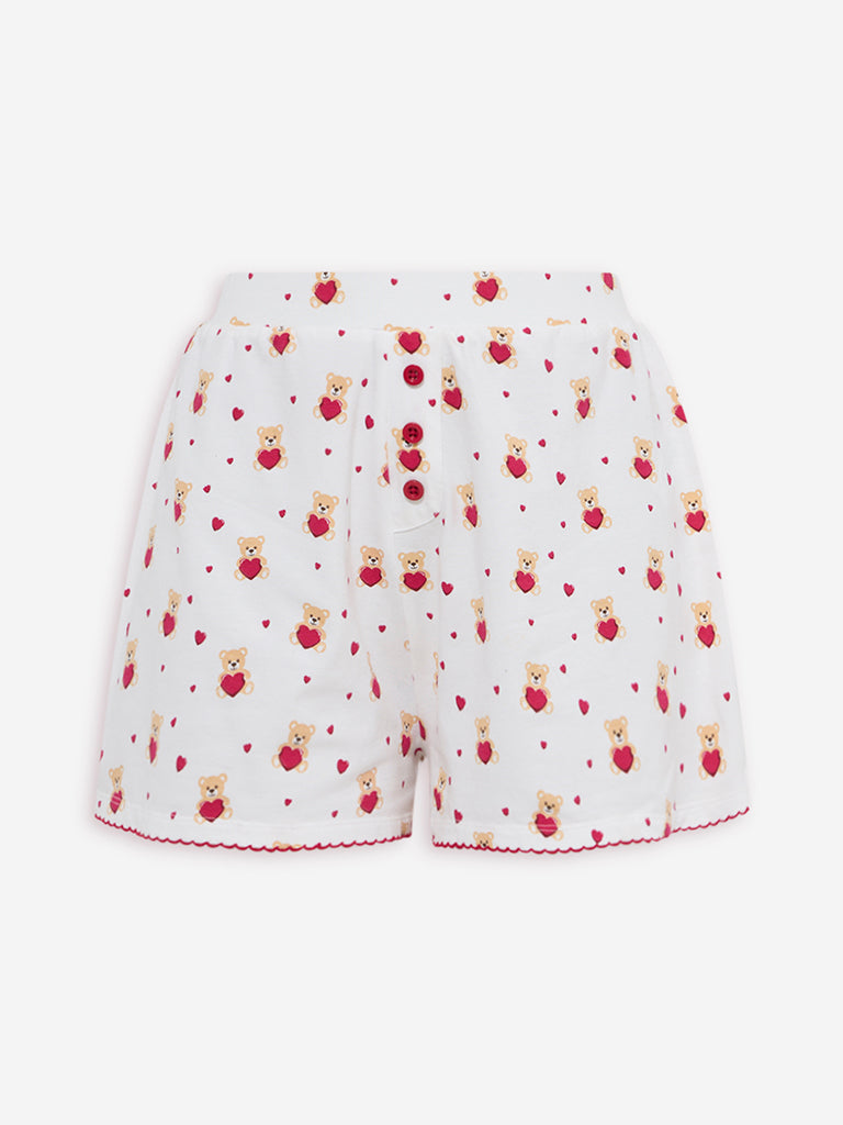 Adorned with adorable teddy and heart prints. these white shorts from Superstar are constructed from a cotton-blend fabric for ease of movement. Fitted with an elasticated waistband. they ensure a comfortable fit.
