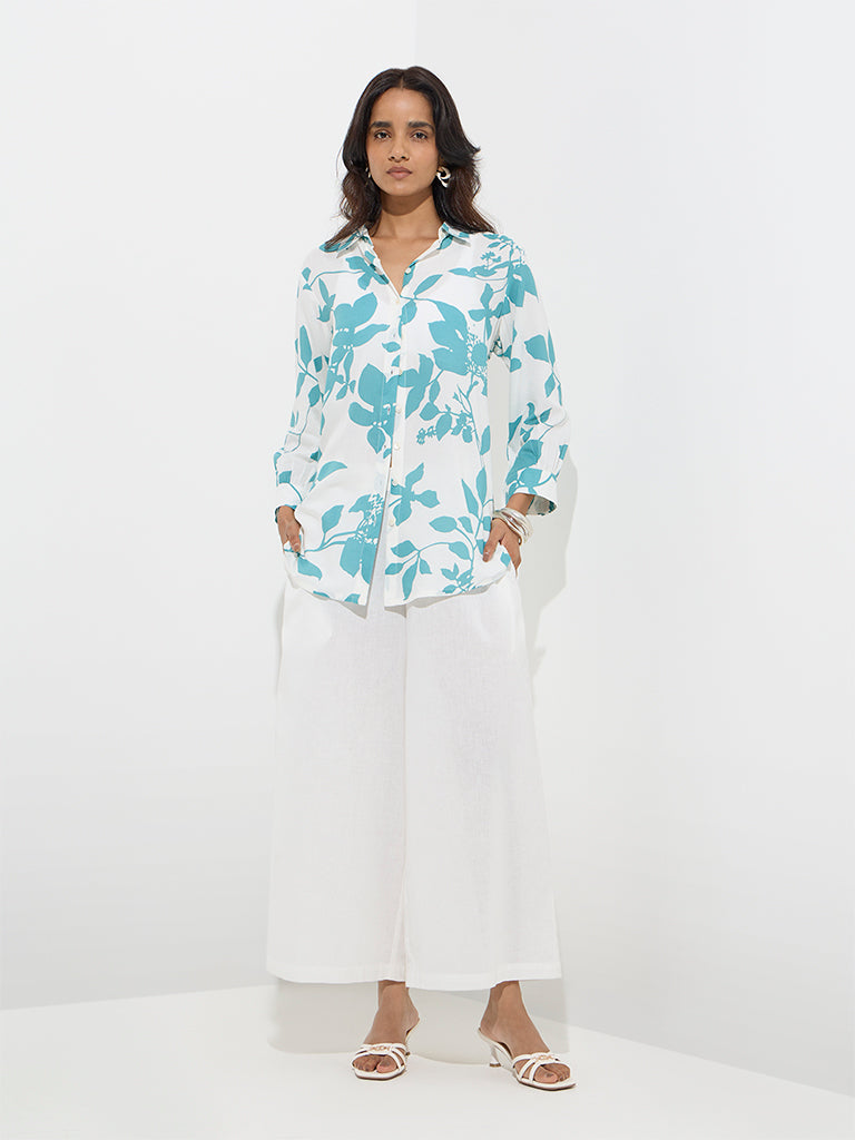 This aqua ethnic tunic from Utsa brings a sense of calm to your everyday line-up with its nature-inspired leaf motifs. Created from a breathable fabric. it’s designed with a crisp collar that extends to a button placket and full sleeves for a polished finish.