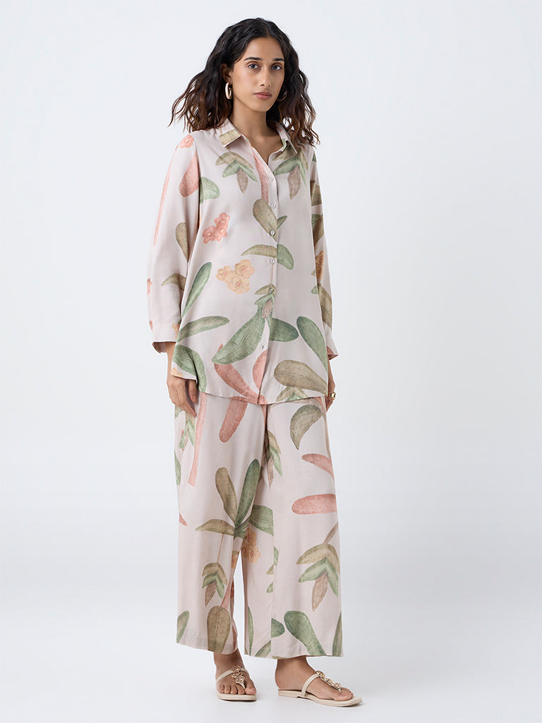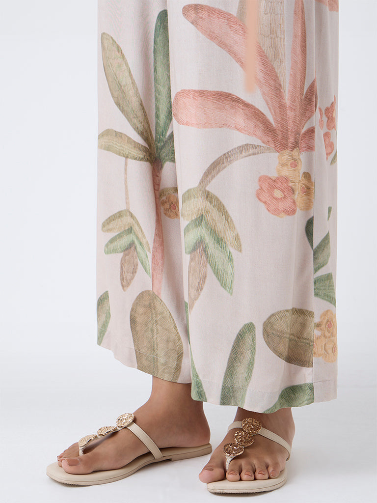 Be the first to review “Utsa Beige Botanical Printed Palazzos”
