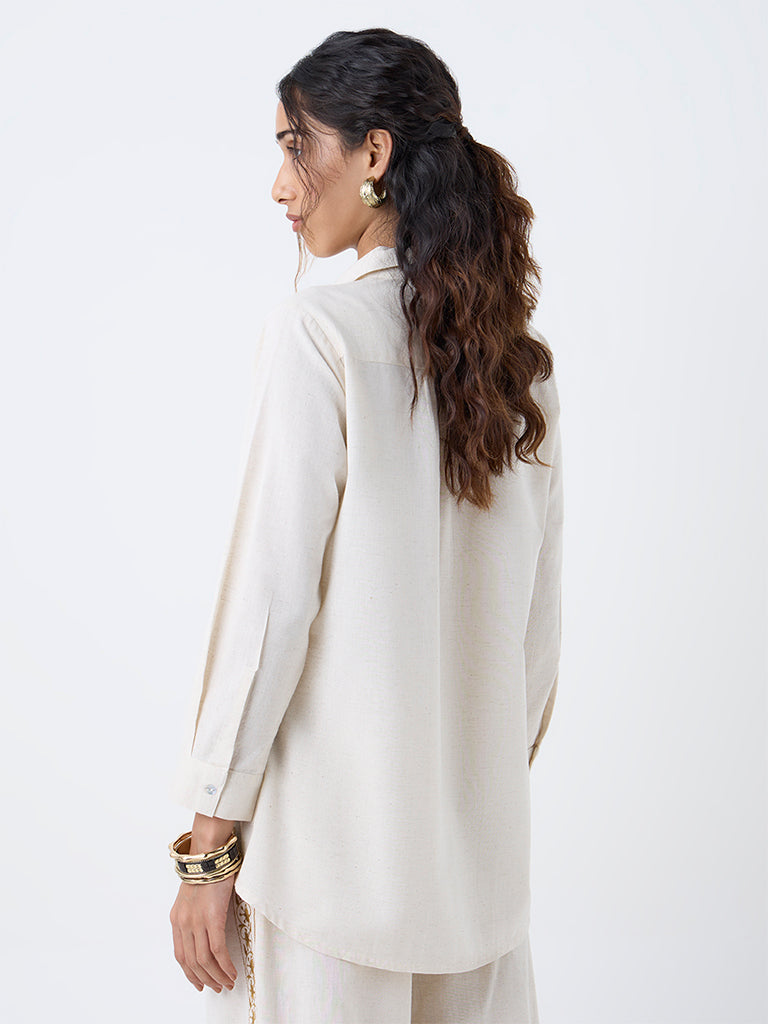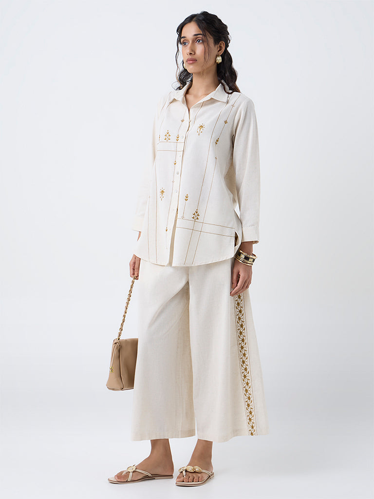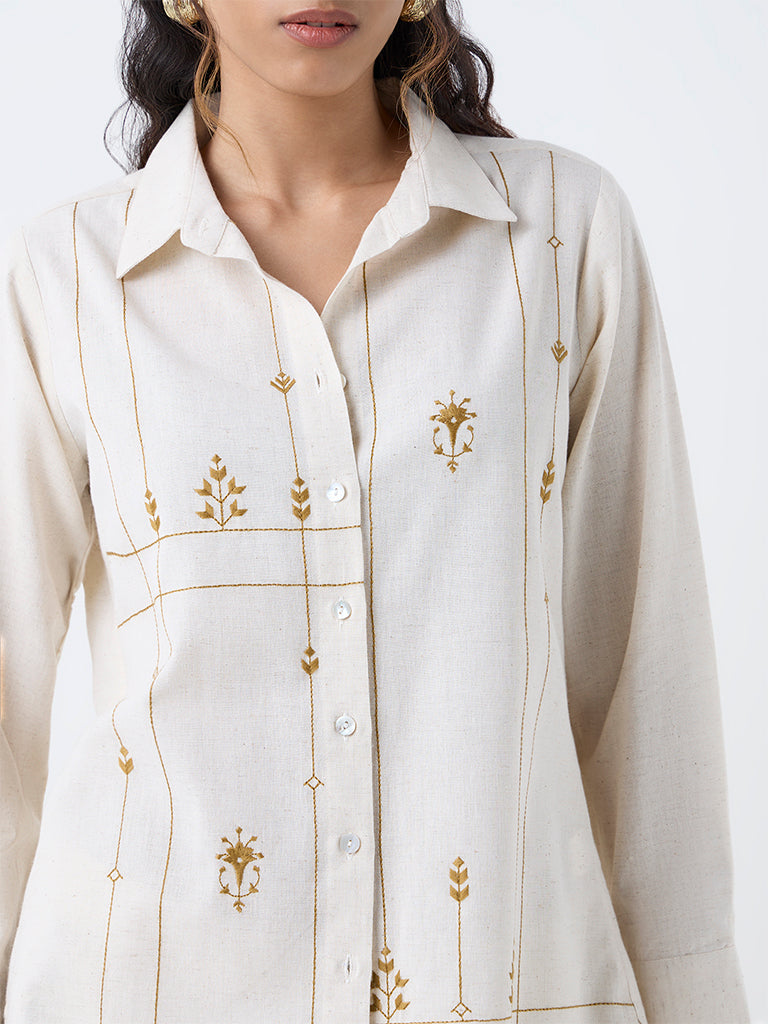 Utsa Beige Embroidered Cotton-Blend Tunic