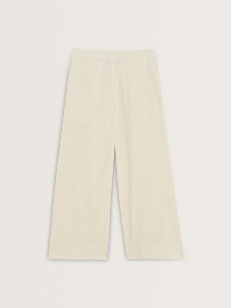 Utsa Beige Flared High-Rise Cotton-Blend Palazzos