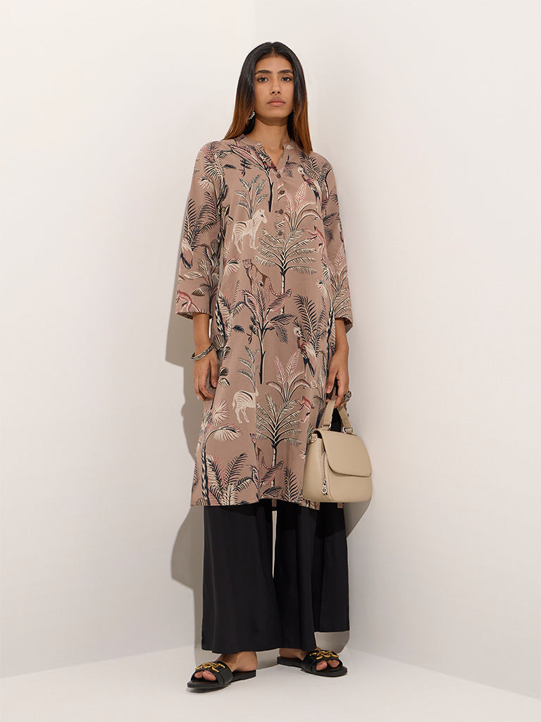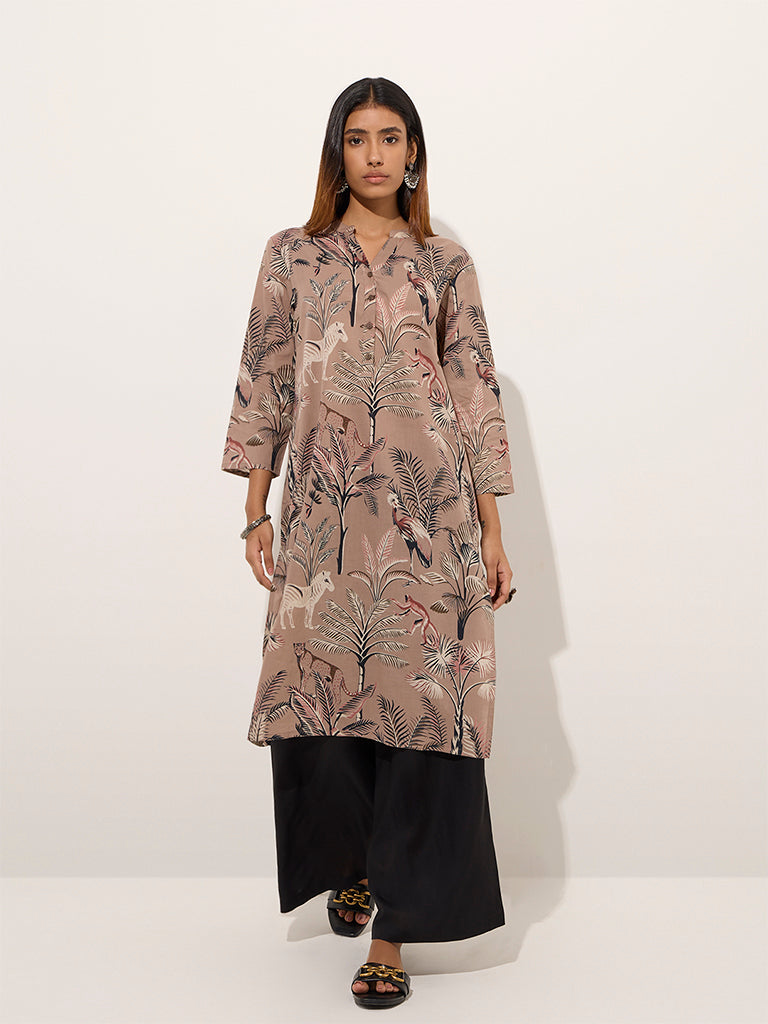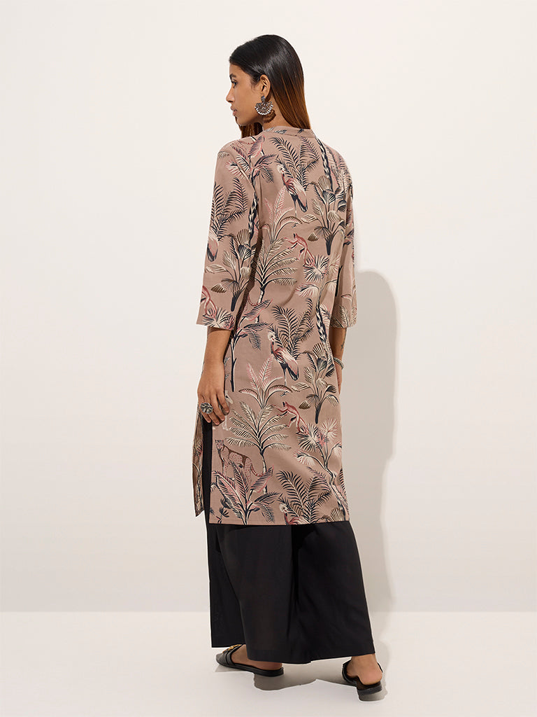 Utsa Beige Nature-Inspired Cotton Straight Kurta