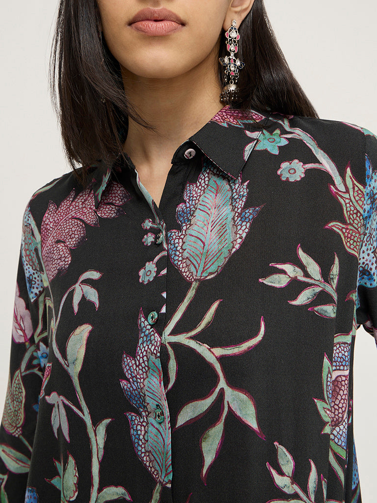 Be the first to review “Utsa Black Botanical Printed Straight Kurta” Cancel reply