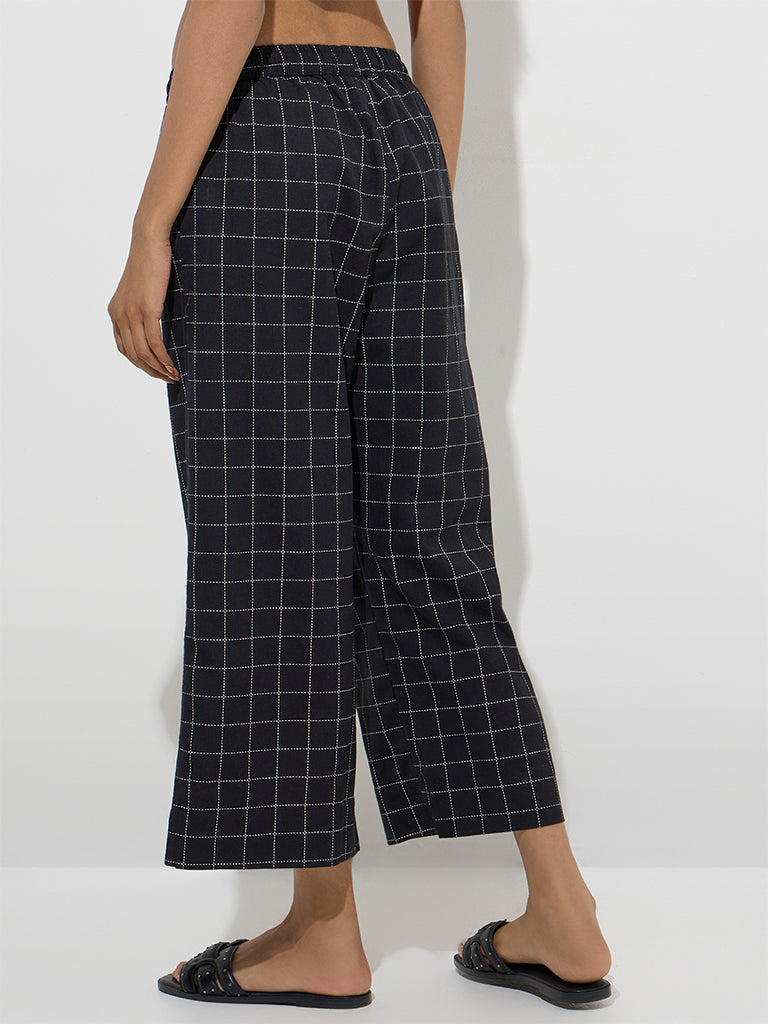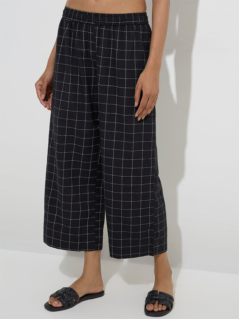 Utsa Black Checkered Cotton-Blend Ethnic Pants