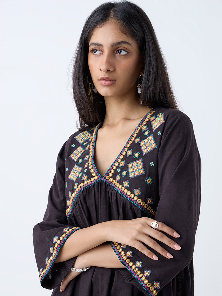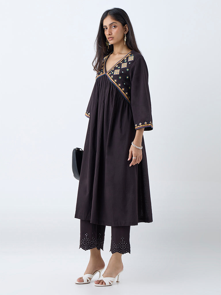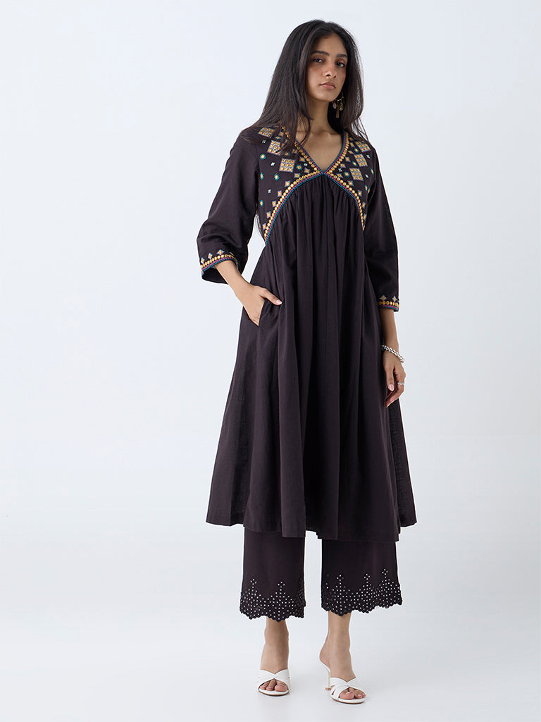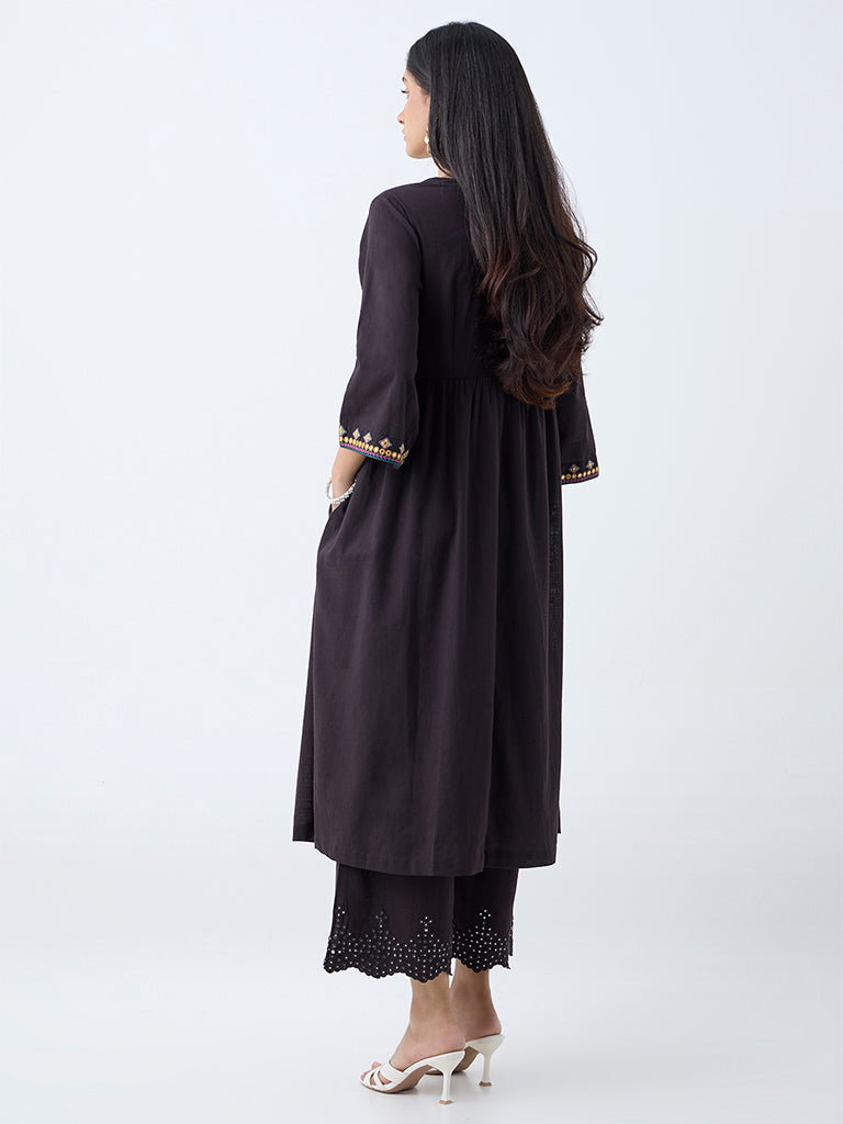 Utsa Black Mirror Work Anarkali Cotton Kurta