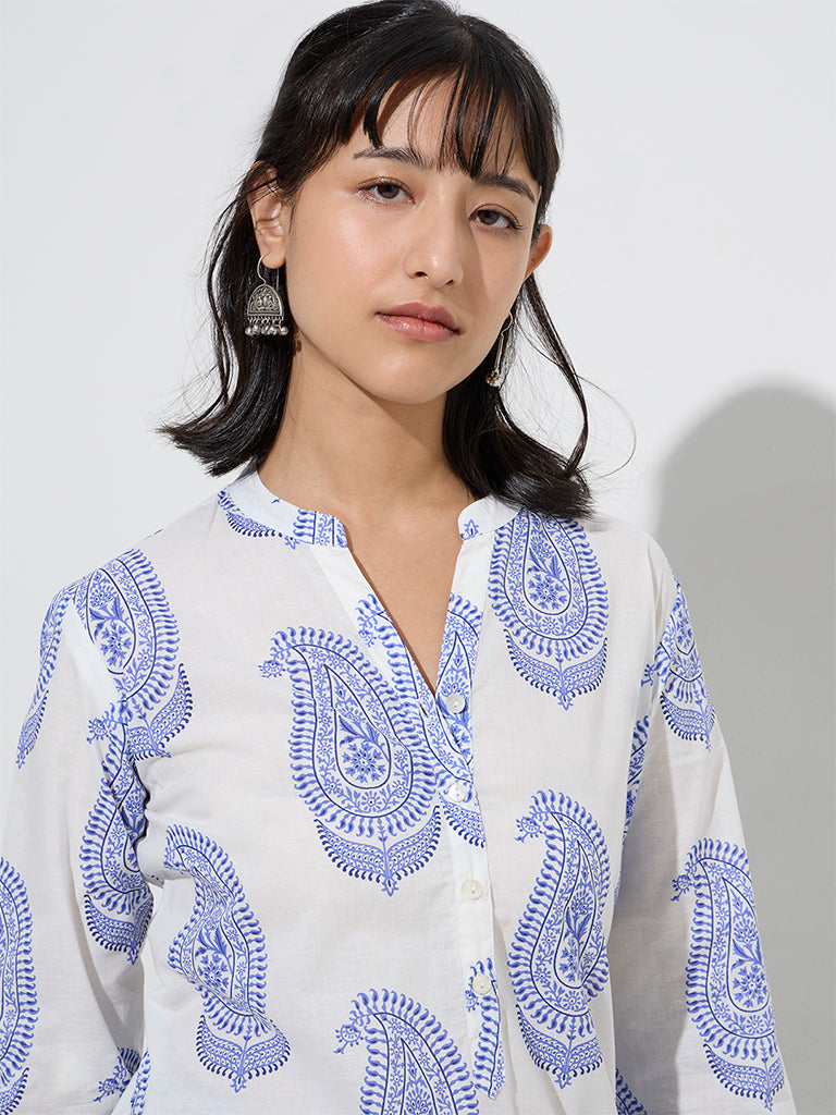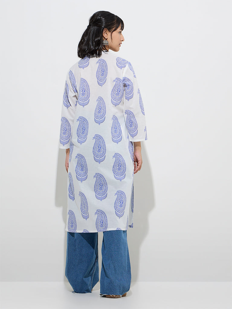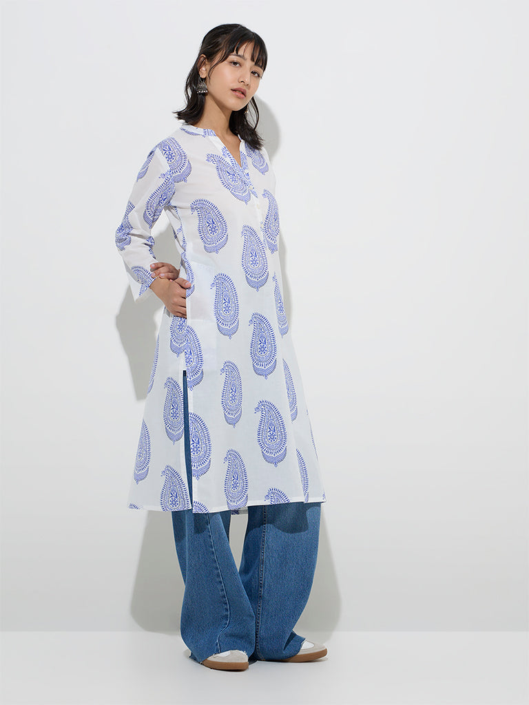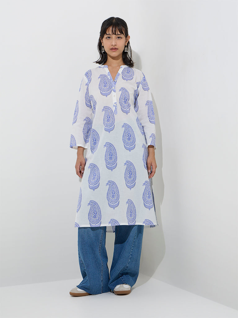 Utsa Blue Paisley Printed Cotton Straight Kurta