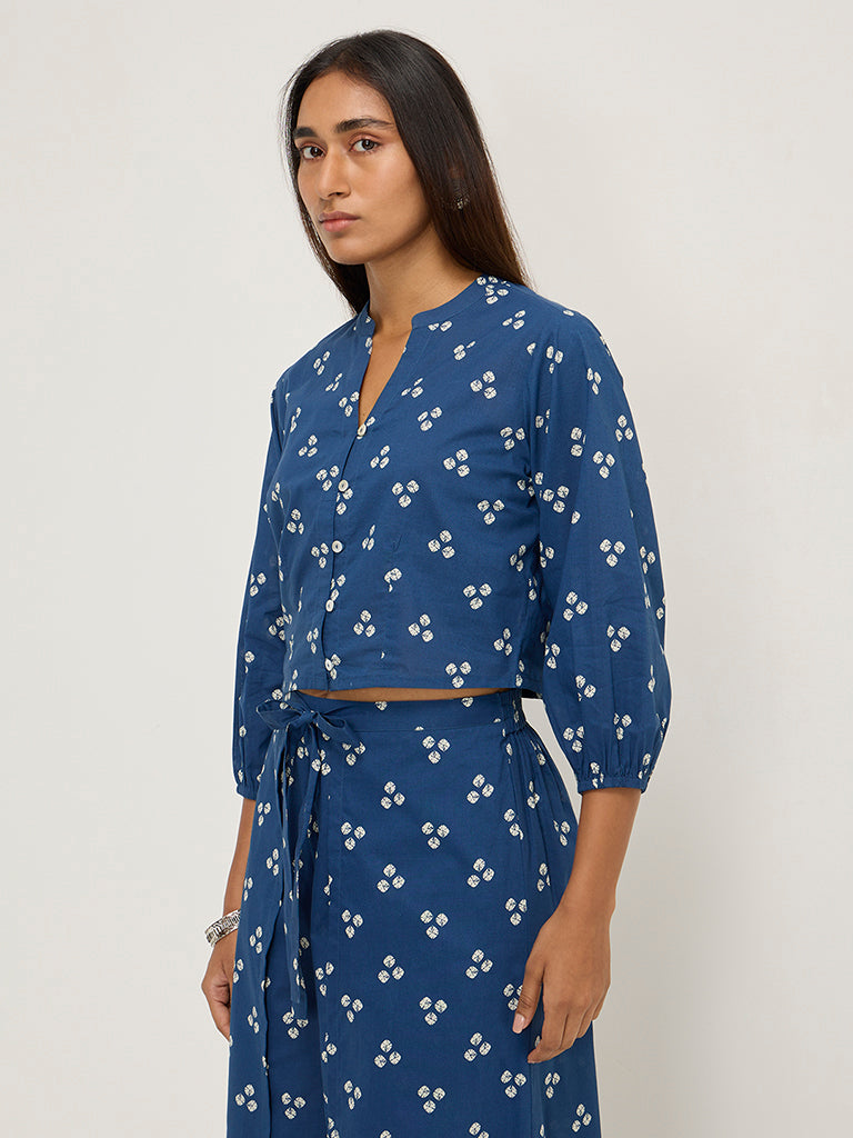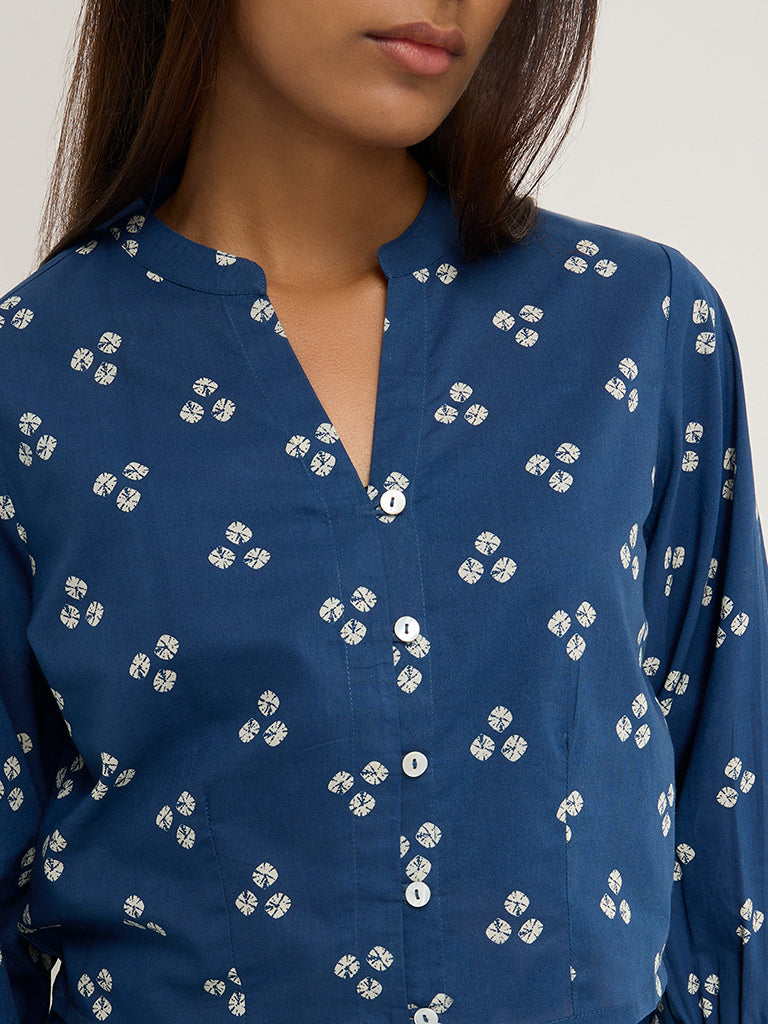 This blue top from Utsa flaunts dainty patterns throughout. Milled from a cotton-rich fabric. it is complete with a notched neckline and blouson sleeves.