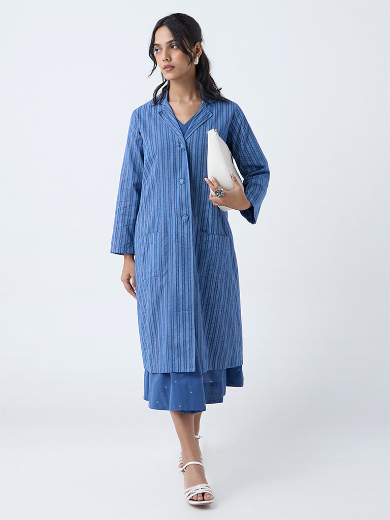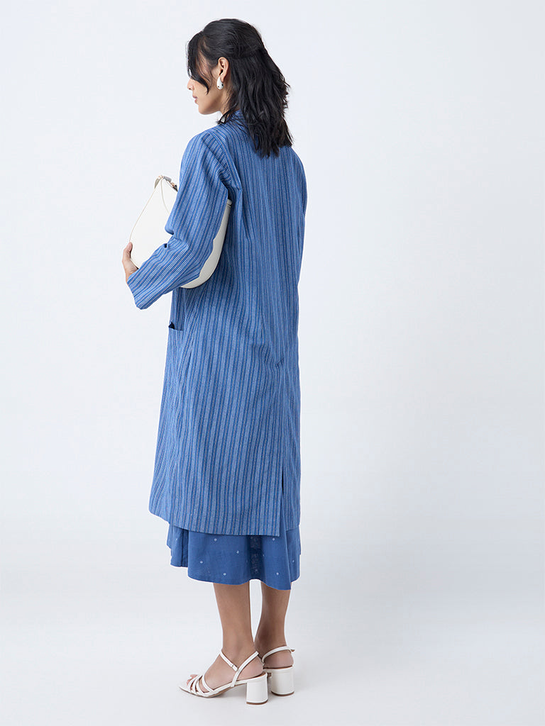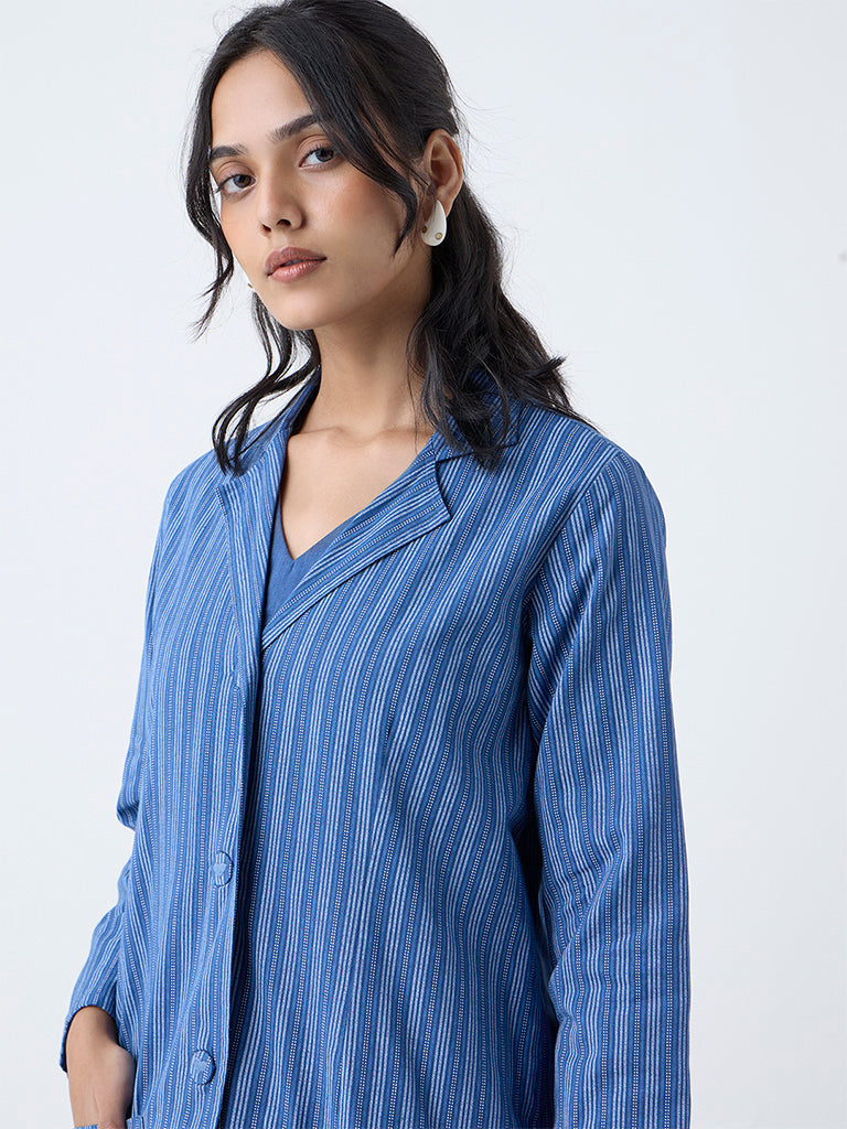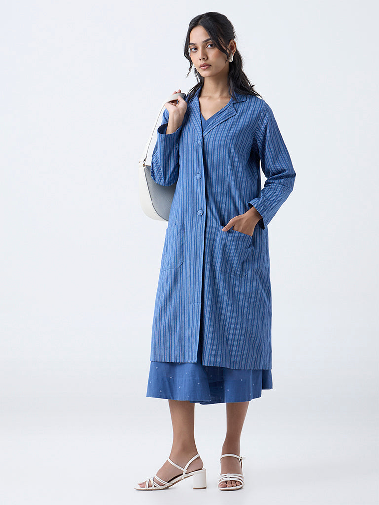 Be the first to review “Utsa Blue Stripe Printed Cotton Jacket”