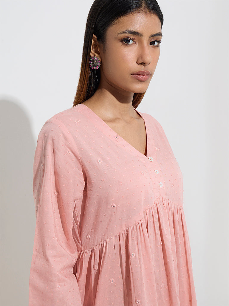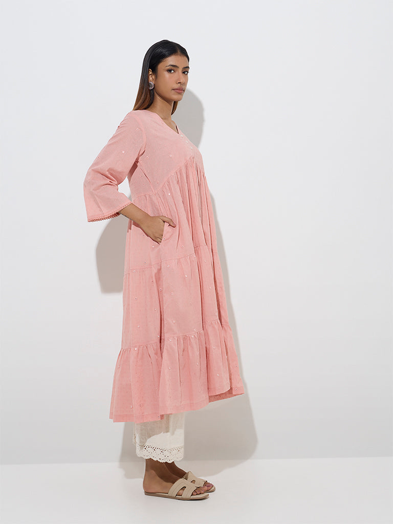 Utsa Blush Pink Mirror-Detailed Cotton A-Line Kurta