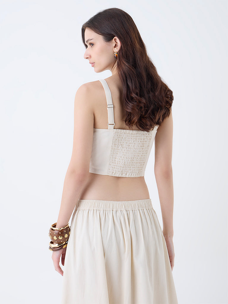 Utsa Cream Embroidered Cotton Top