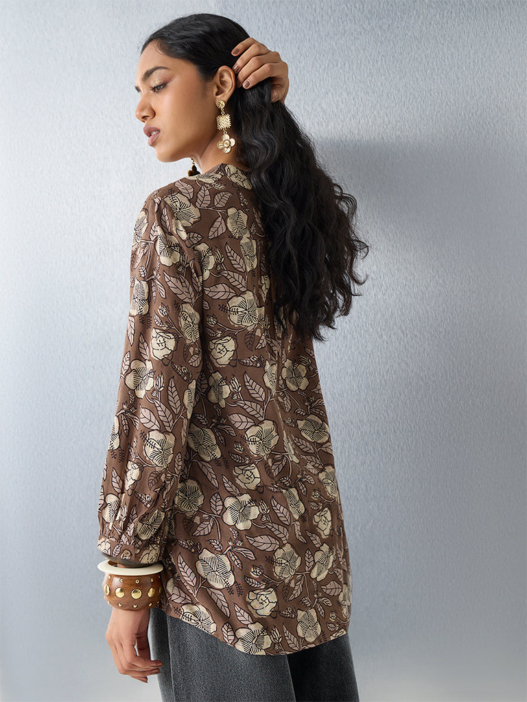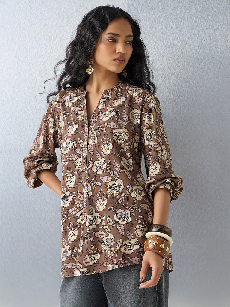 Utsa Dark Brown Floral Printed Tunic