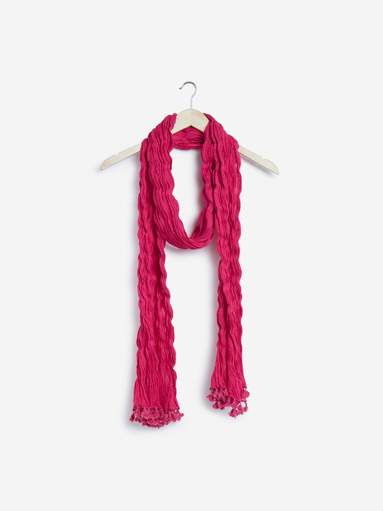 Lend a contemporary twist to your ethnic wardrobe by adding this fuchsia dupatta from Utsa. Crafted out of crushed fabric for modern appeal. it is finished with beads and tassels at the hem for chic style and pairs well with a variety of ethnic outfits.