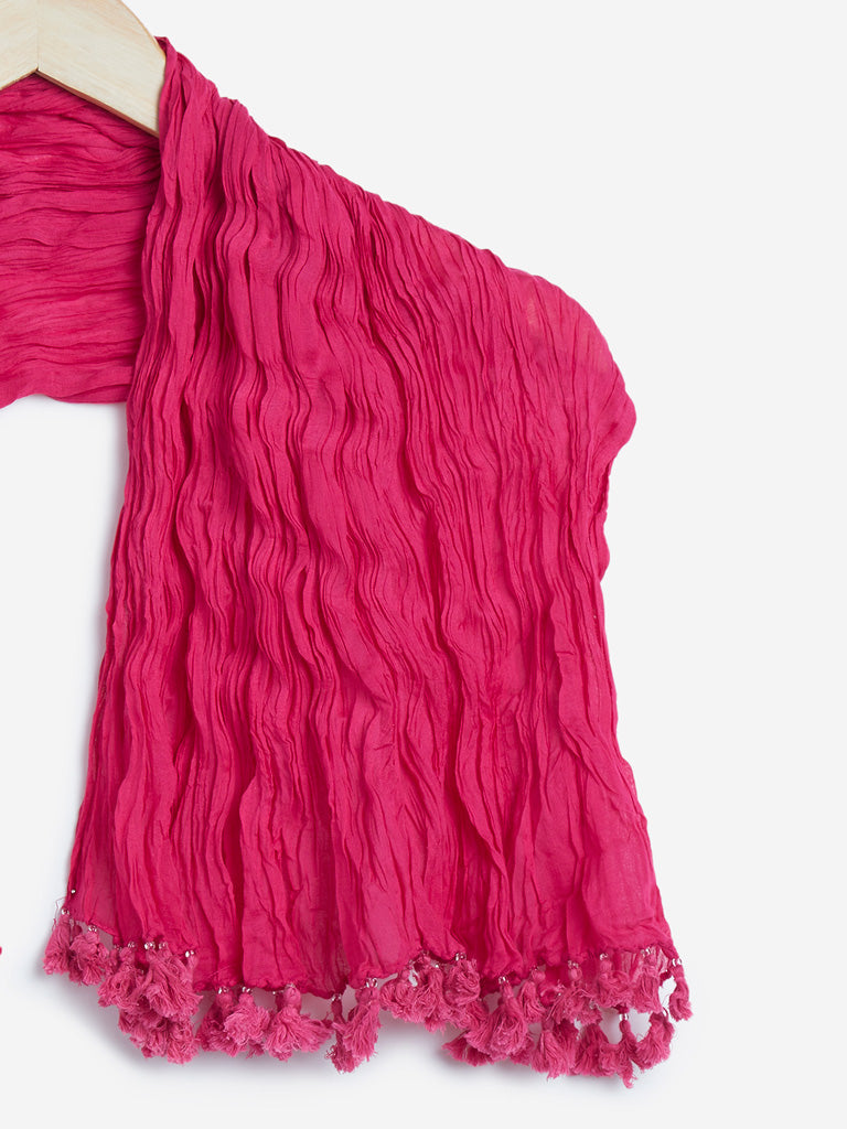 Utsa Fuchsia Crushed Tassel Design Cotton Dupatta