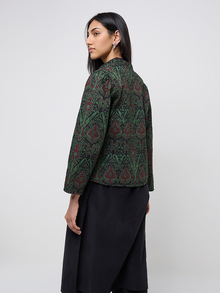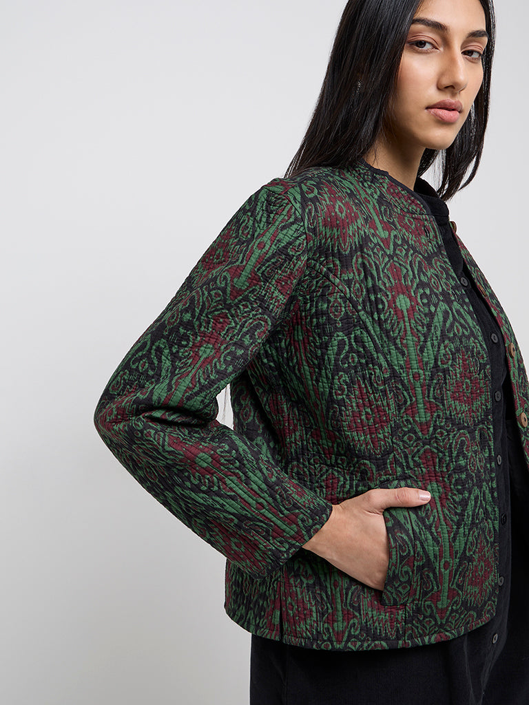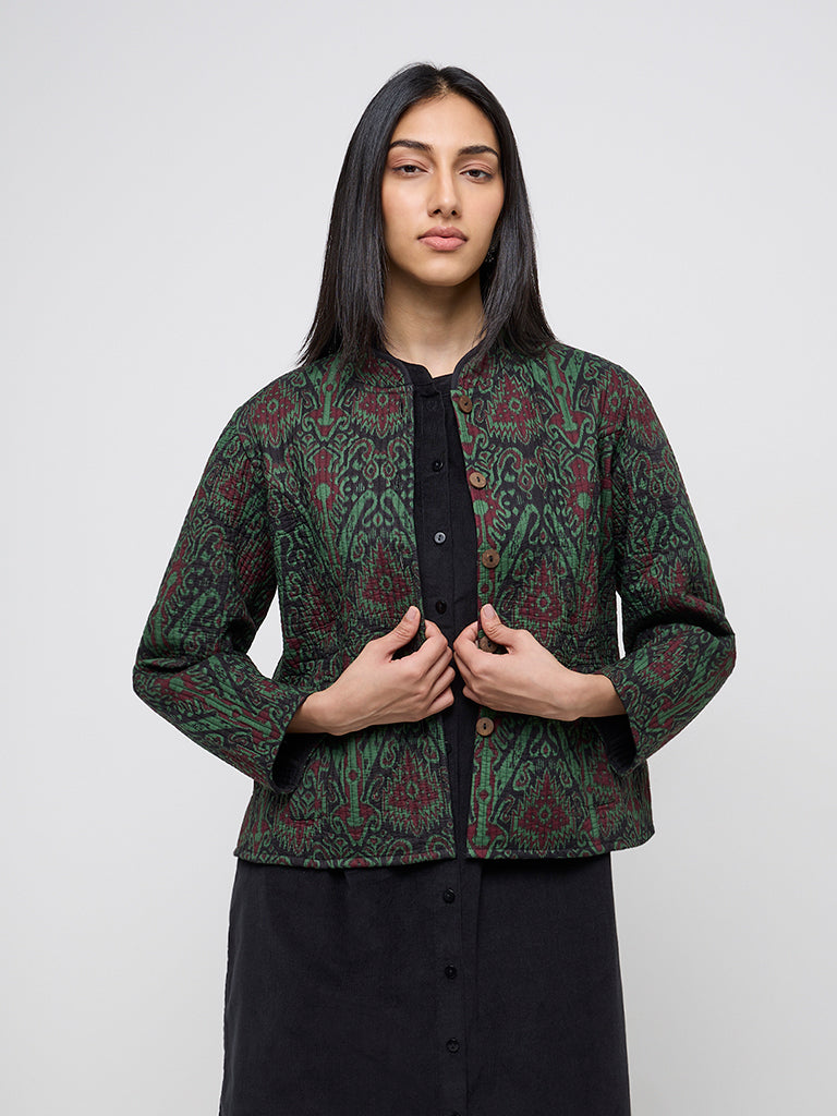 Utsa Green Ikat Design Cotton Quilted Jacket
