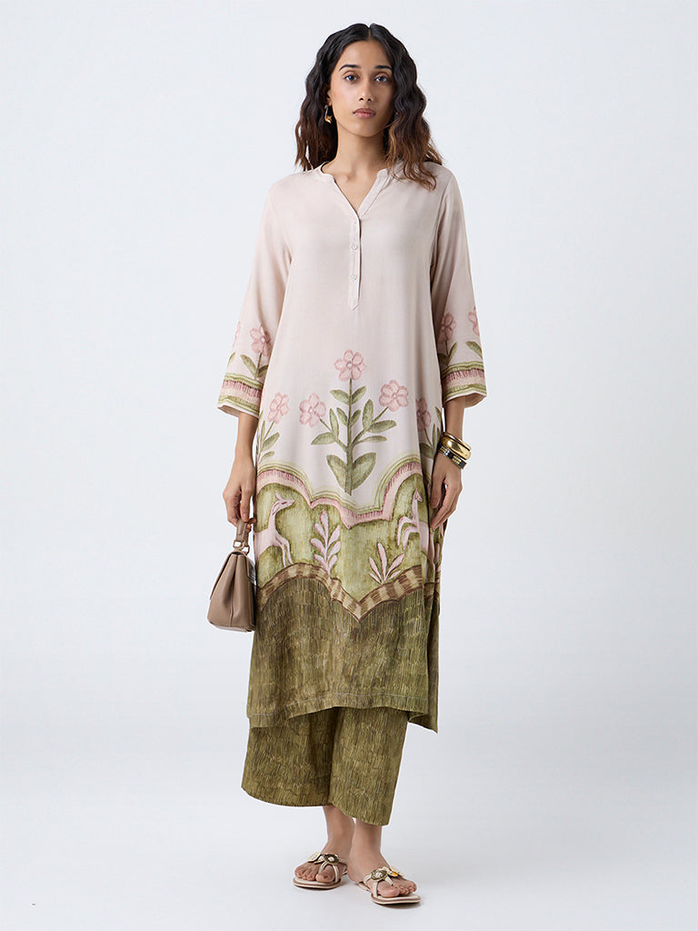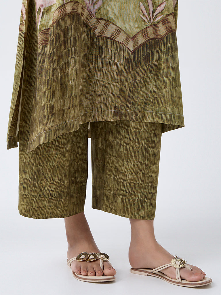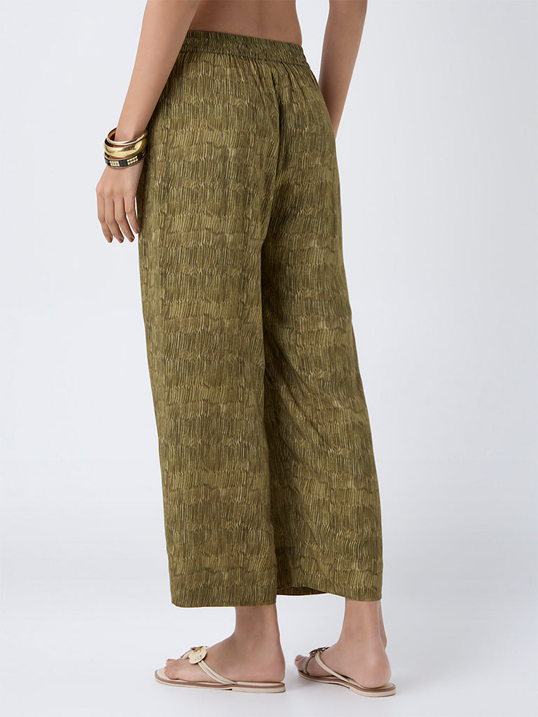 These green printed ethnic pants from Utsa are woven from a lightweight fabric. ensuring ease and breathability through the day. Designed with an elasticated waist and adjustable drawstrings. it offers a comfortable fit for effortless everyday wear.