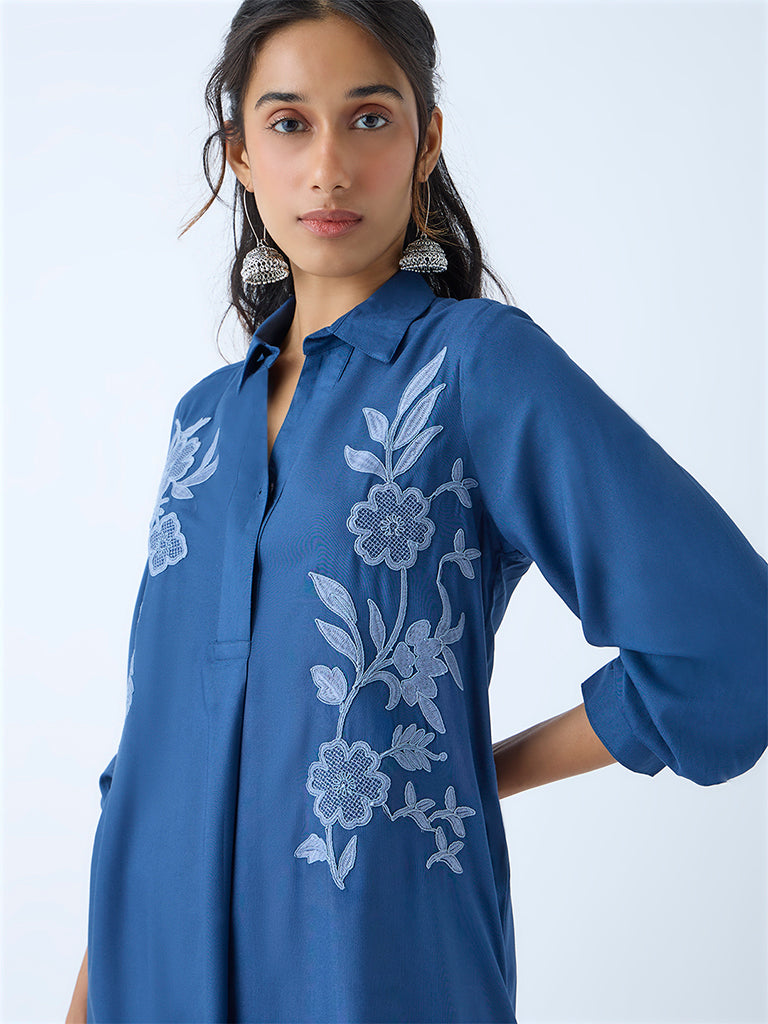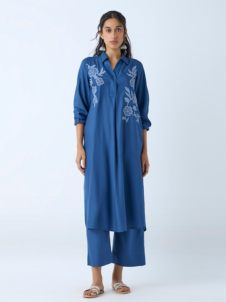 Utsa Indigo Floral Embroidered A-Line Kurta