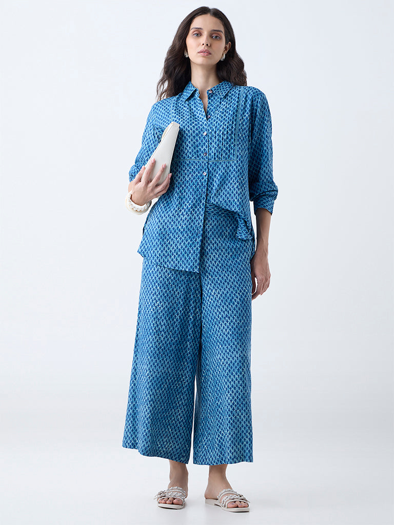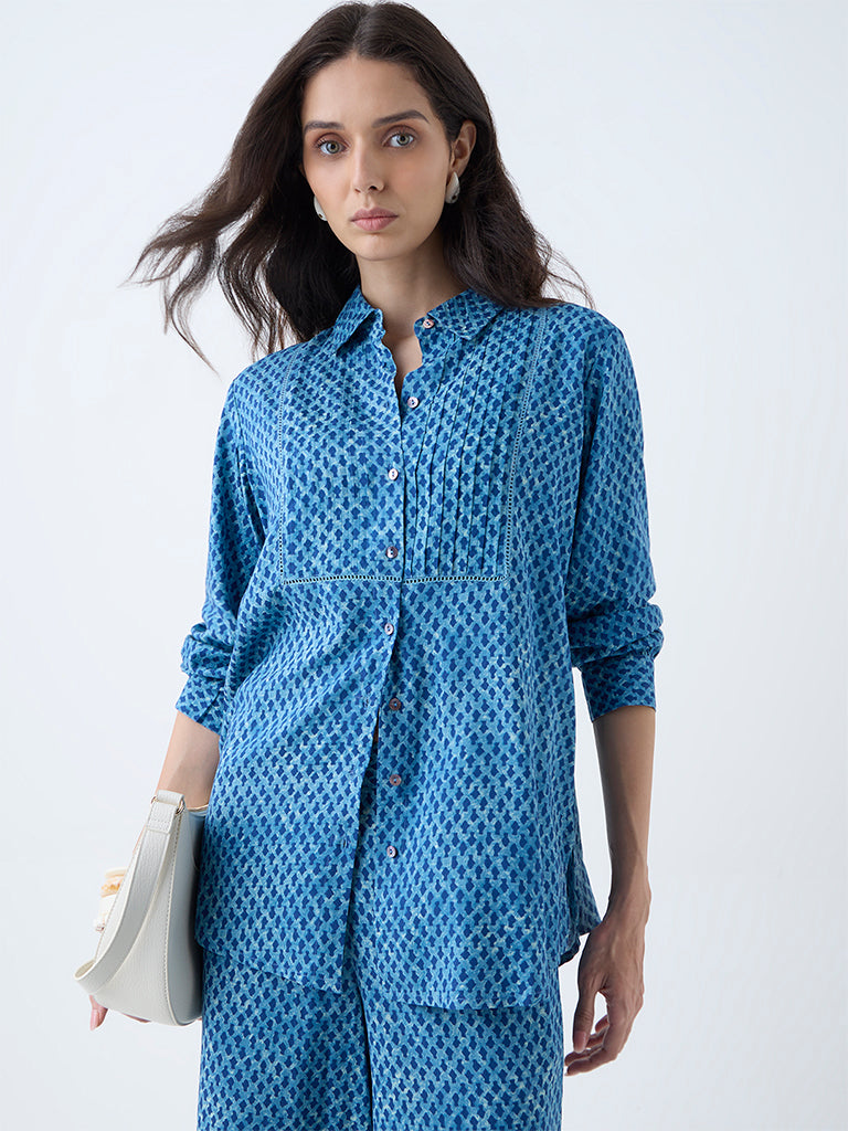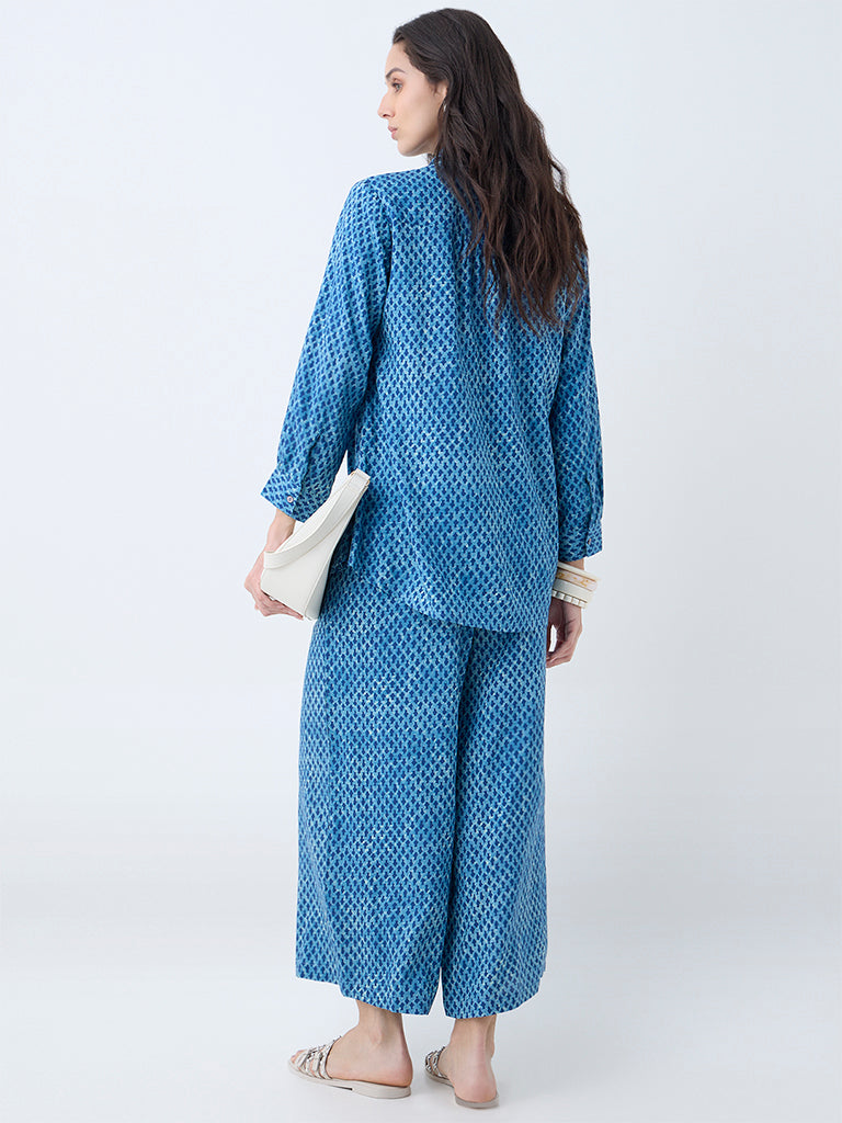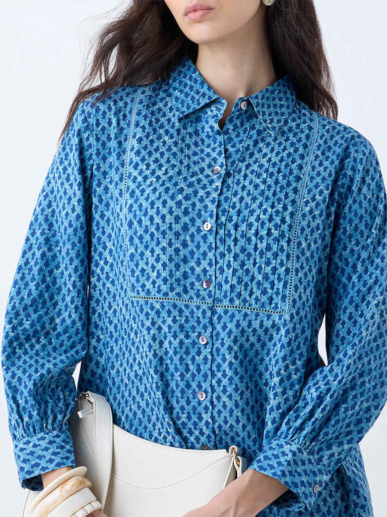 Refresh your ethnic line-up with this indigo tunic from Utsa. decked with dainty prints that strike the perfect balance between tradition and modernity. Spun from a lightweight fabric for all-day ease. it is styled with a crisp collar. a neat button placket. and full sleeves for a refined finish.