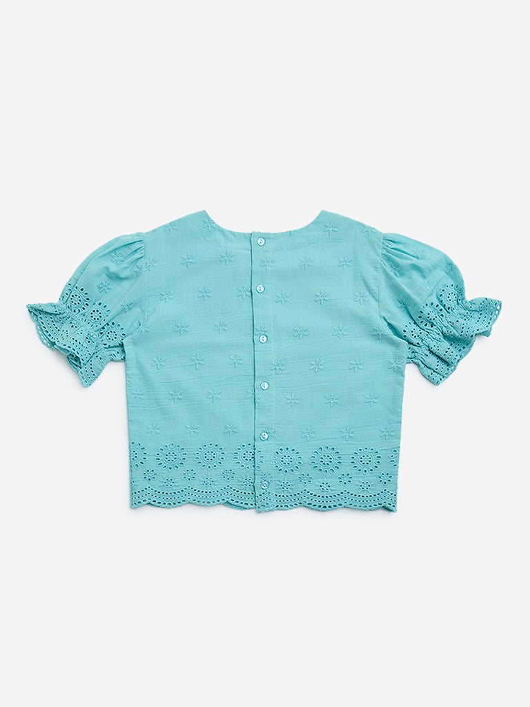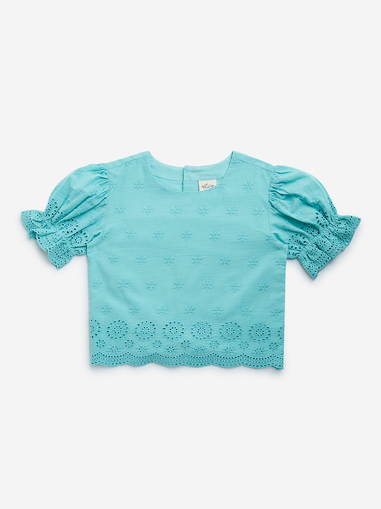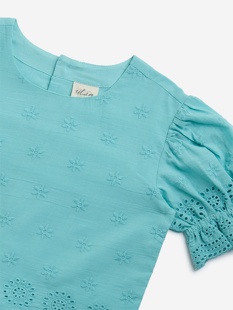 Utsa Kids Aqua Schiffli Design Cotton-Blend Ethnic Top – (8-14yrs)