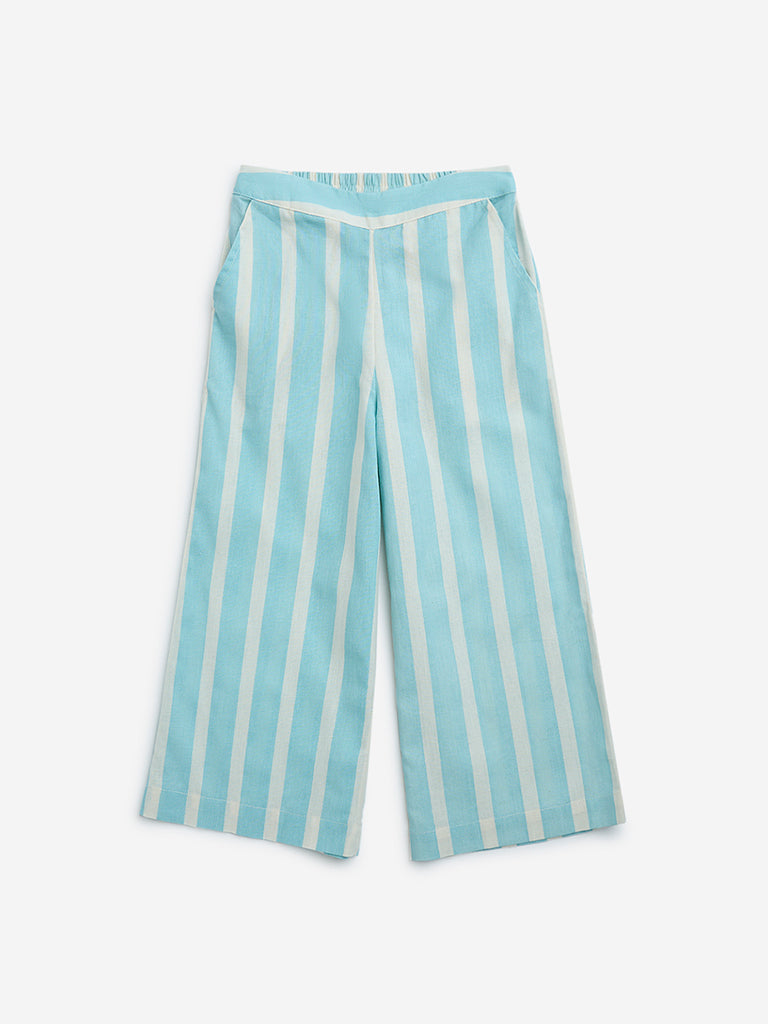 Utsa Kids Aqua Striped Cotton-Blend Ethnic Pants – (2-8yrs)