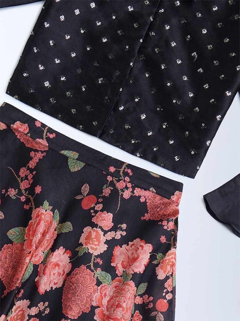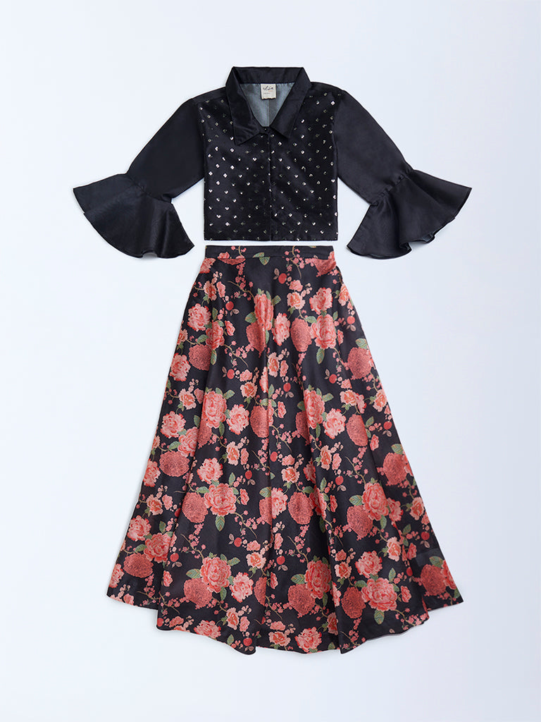Utsa Kids Black Floral Detailed Ethnic Set – (8-14yrs)
